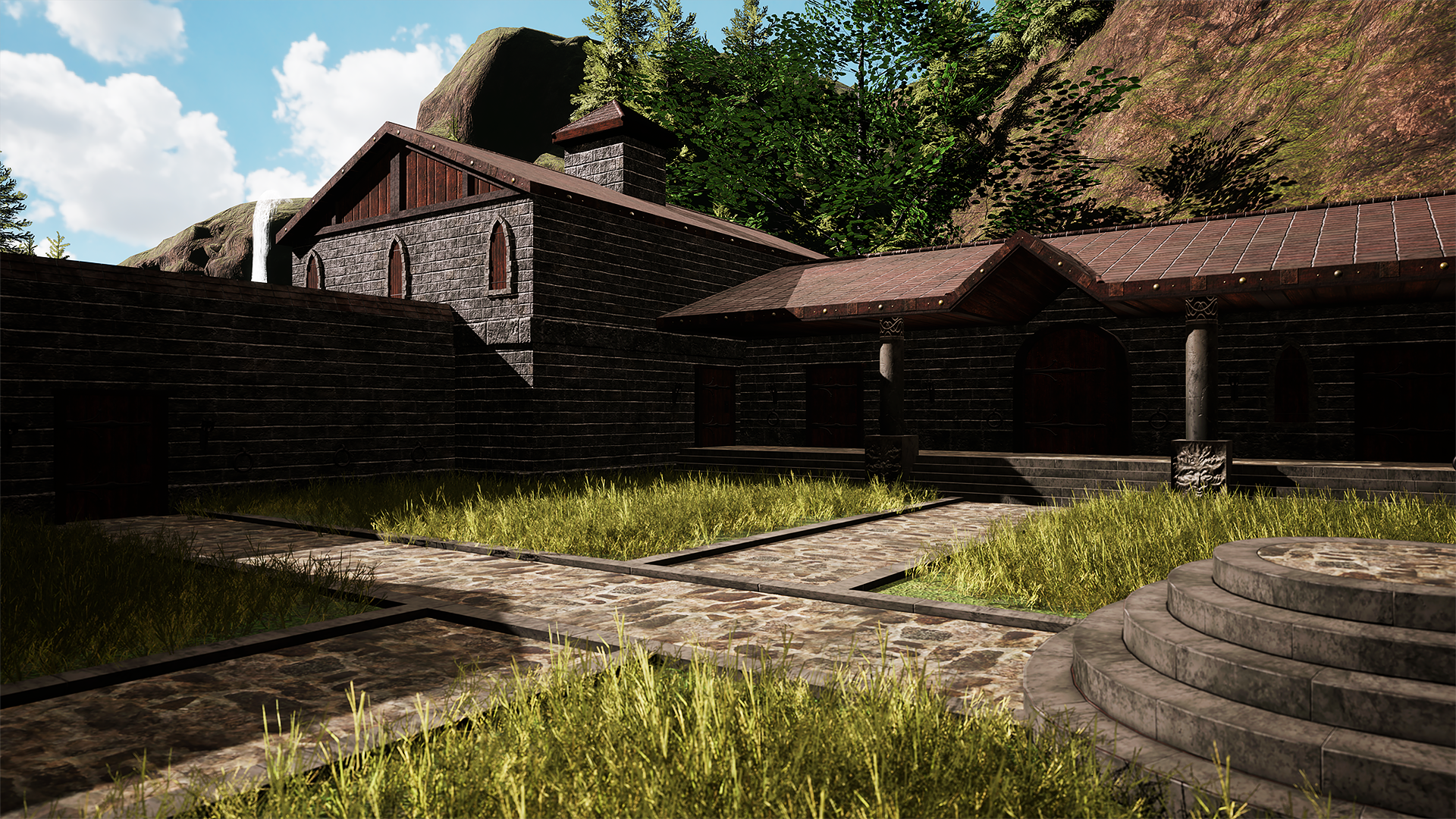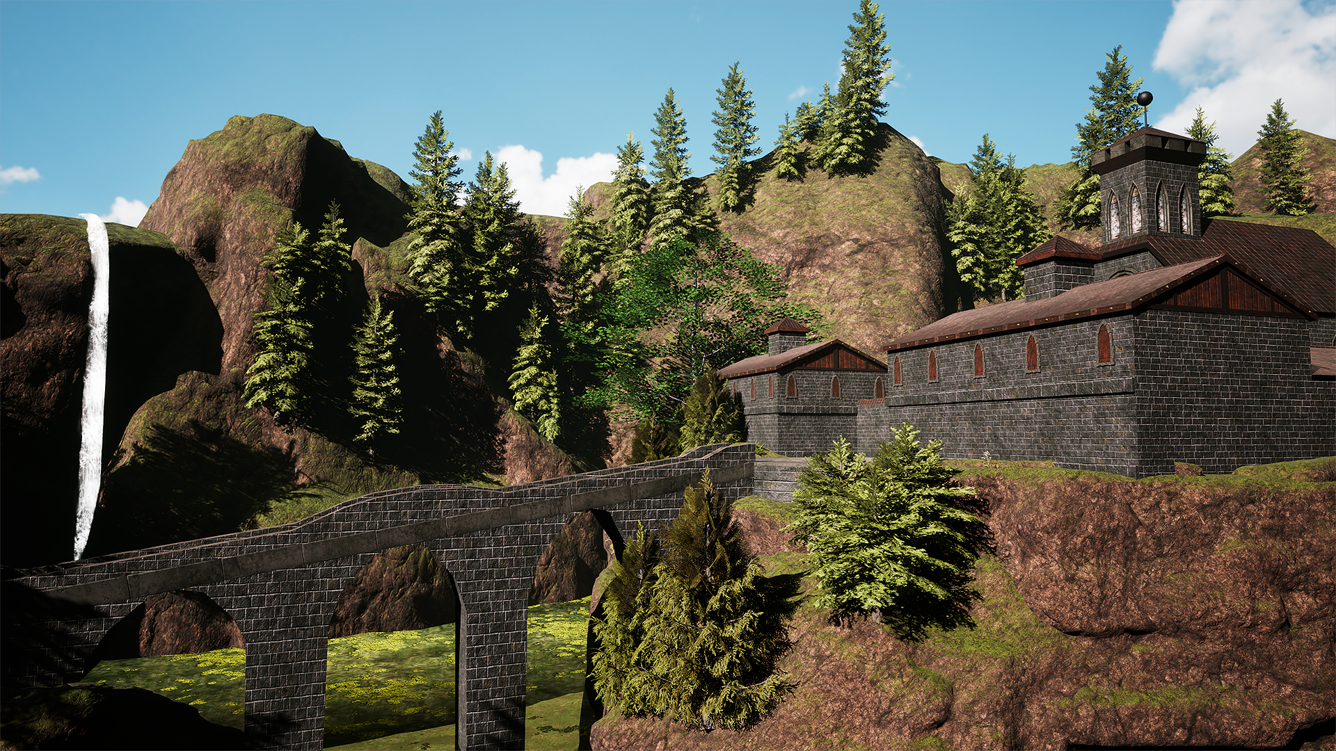 For this scene, I set myself the challenge of using a single 4K trim sheet for all major meshes — including the buildings, ground, church, doors, roofs, bridge, and more. The trim sheet was modeled in 3ds Max, with high-poly details baked down to low-poly in Substance Painter. I finalized the trim and textures in Painter and then rebuilt the entire scene in UE5. For the foliage, mountains, and water, I used selected Marketplace assets to complement the environment.