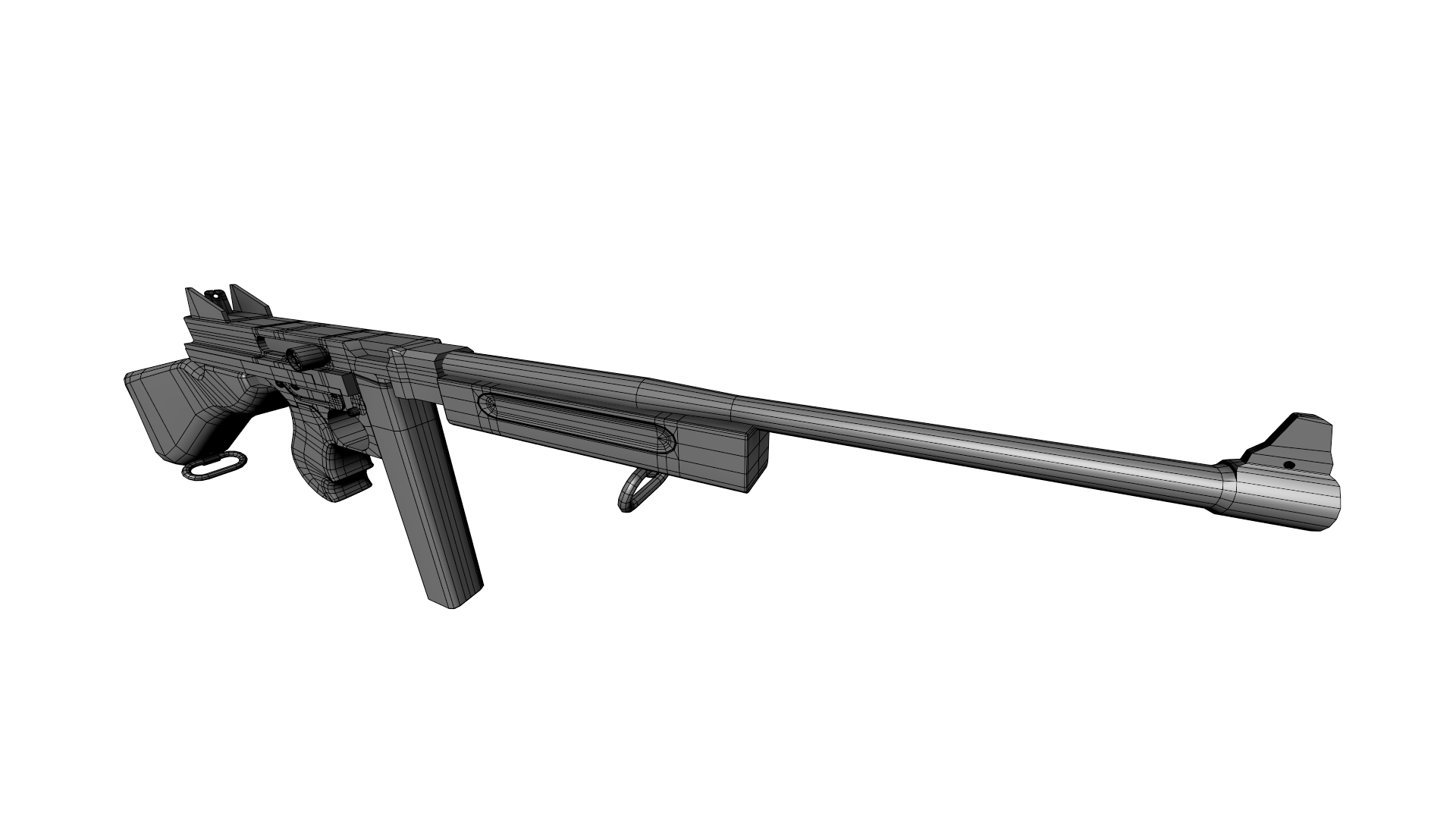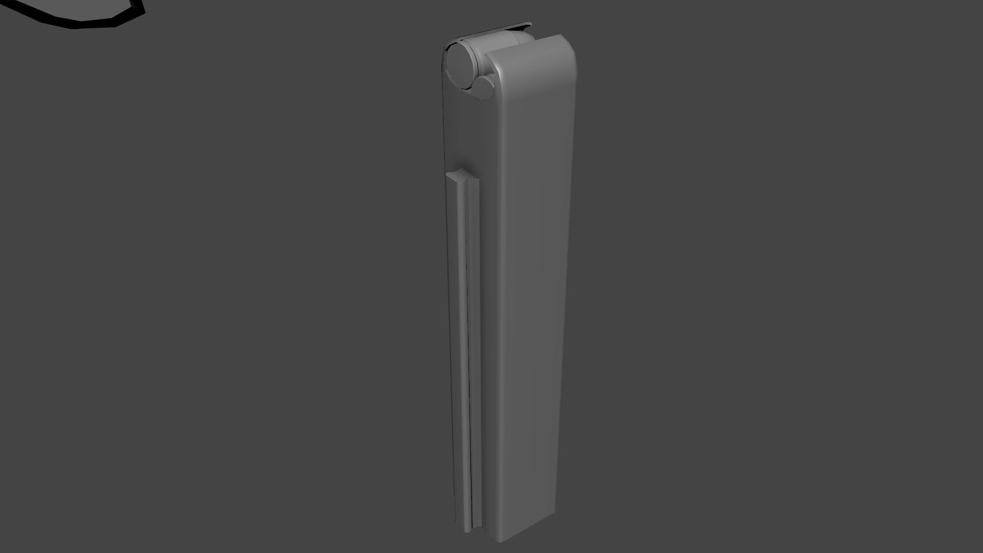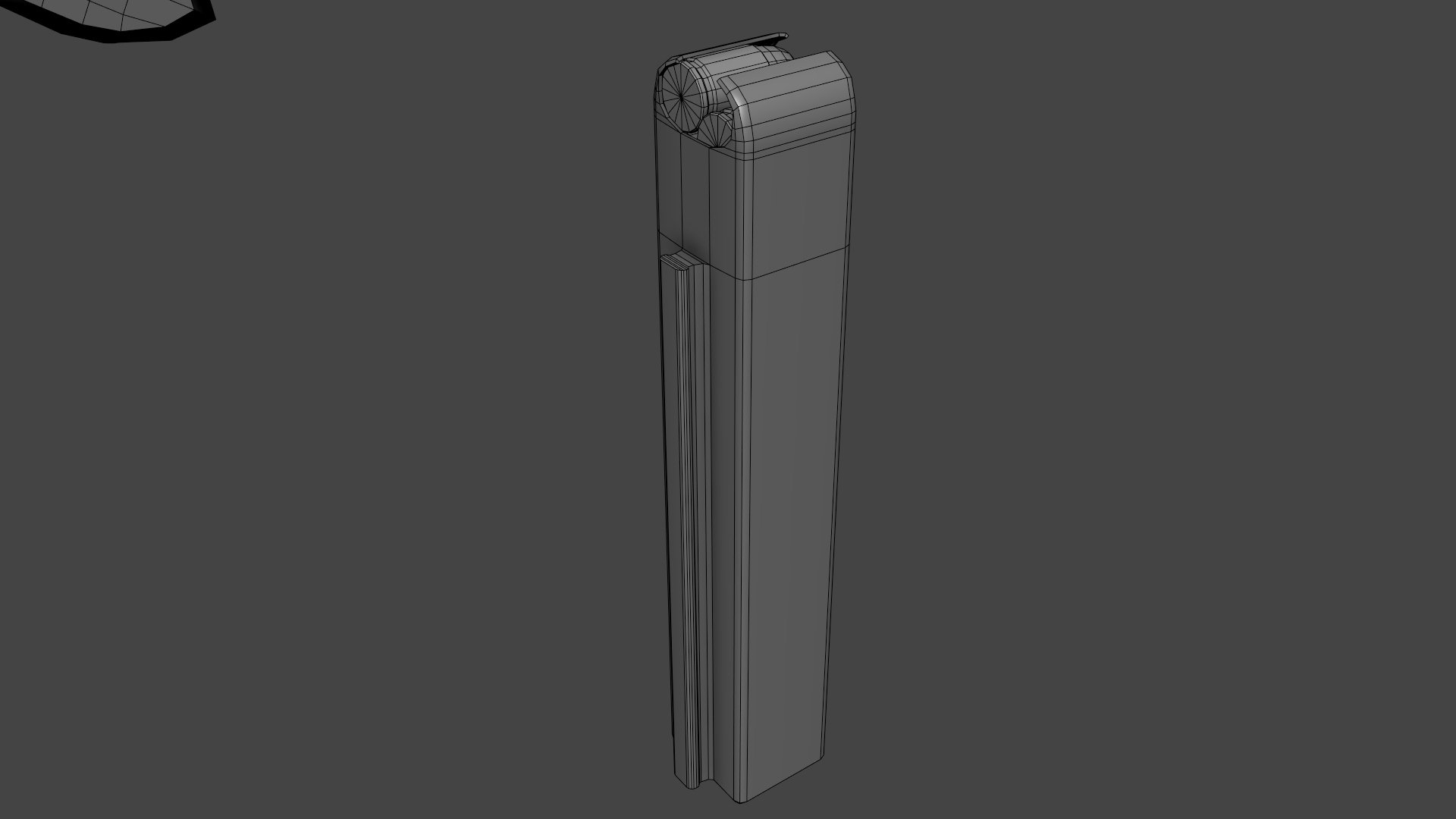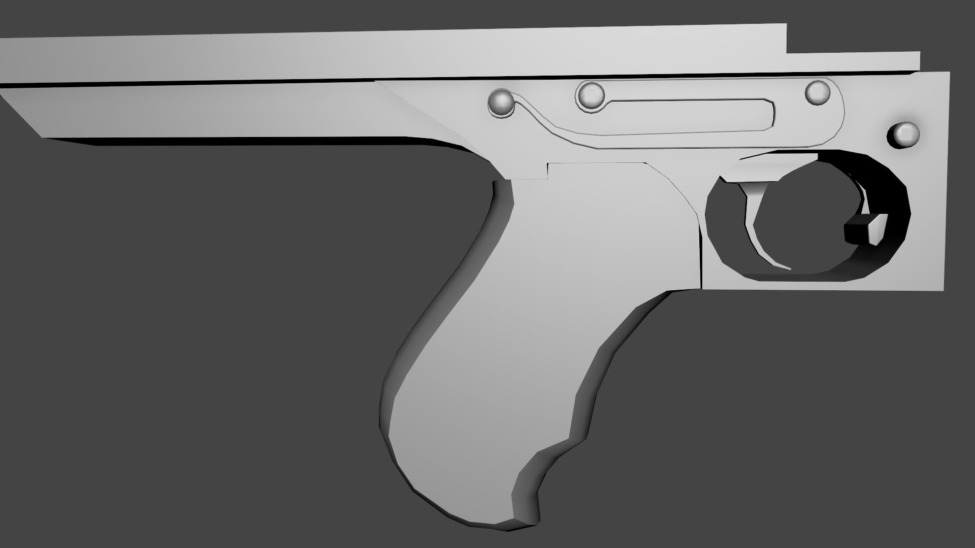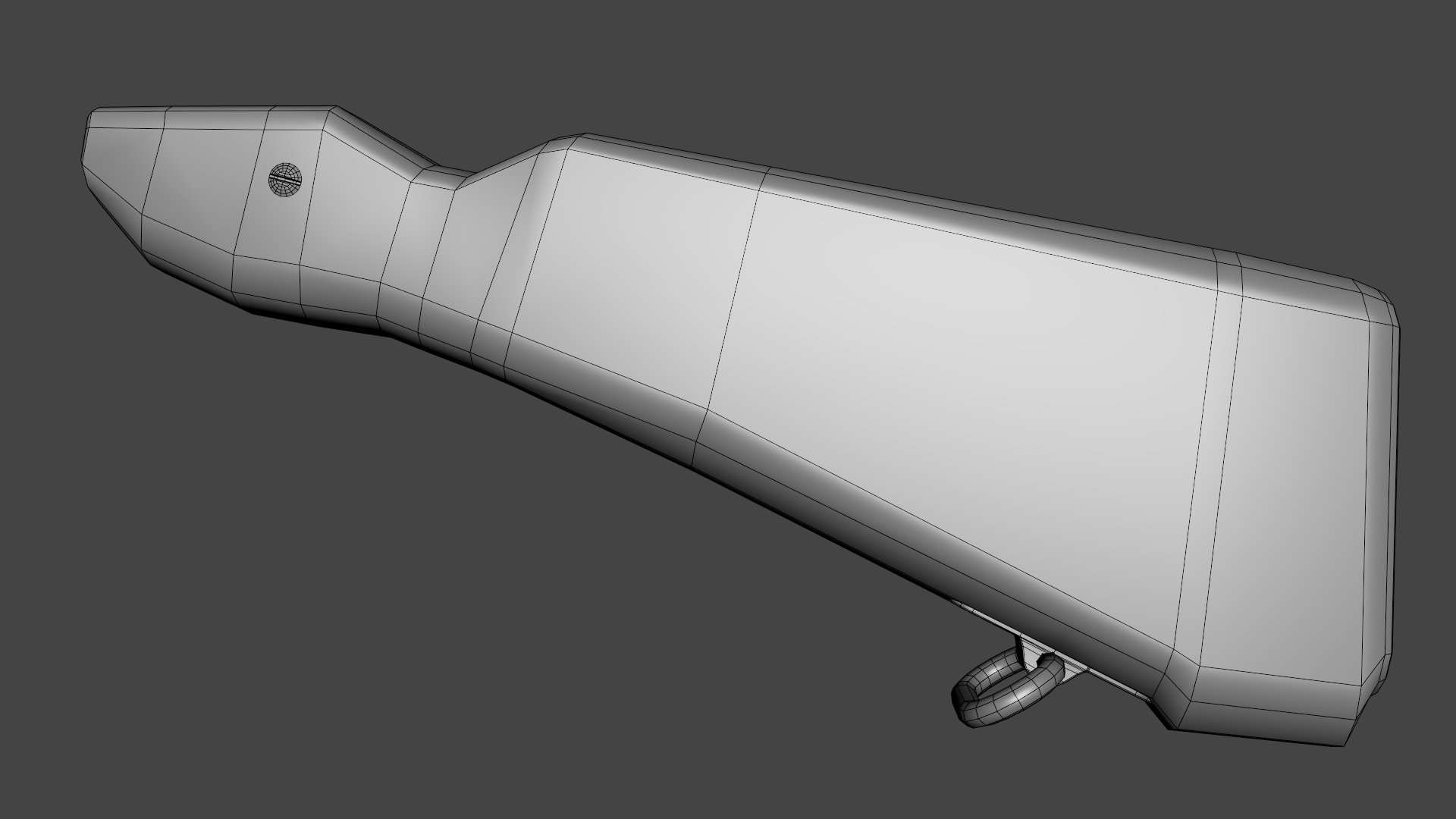 I started to add the insides of the weapon. I need to work on the shape of the buttstock. It's bothering me a bit. The magazine is still a bit of a mess where the bullet enters it.
