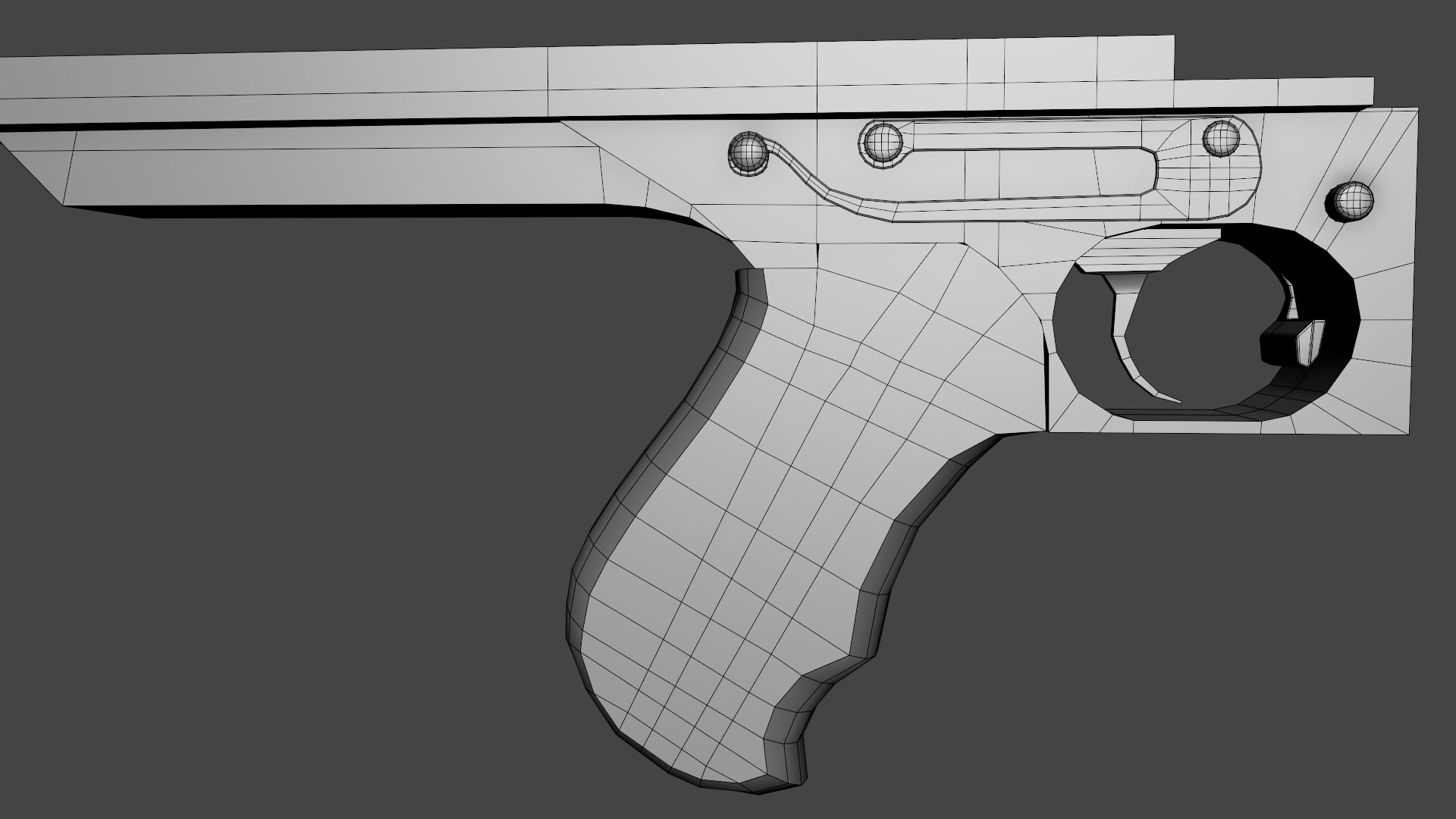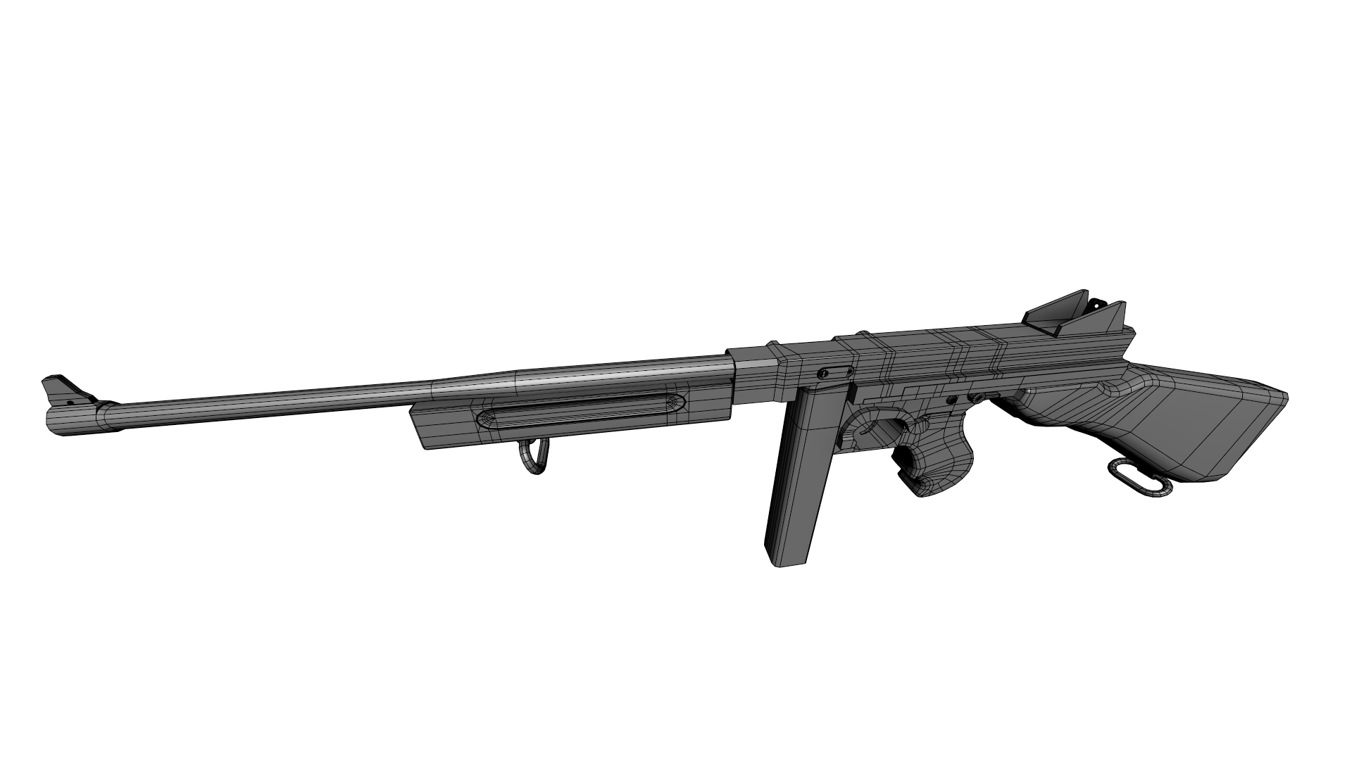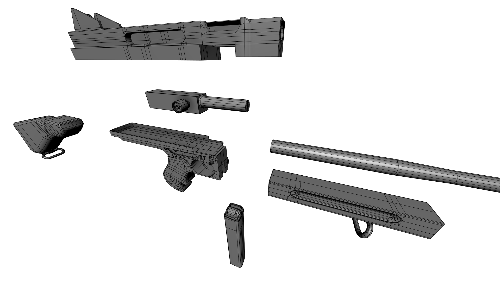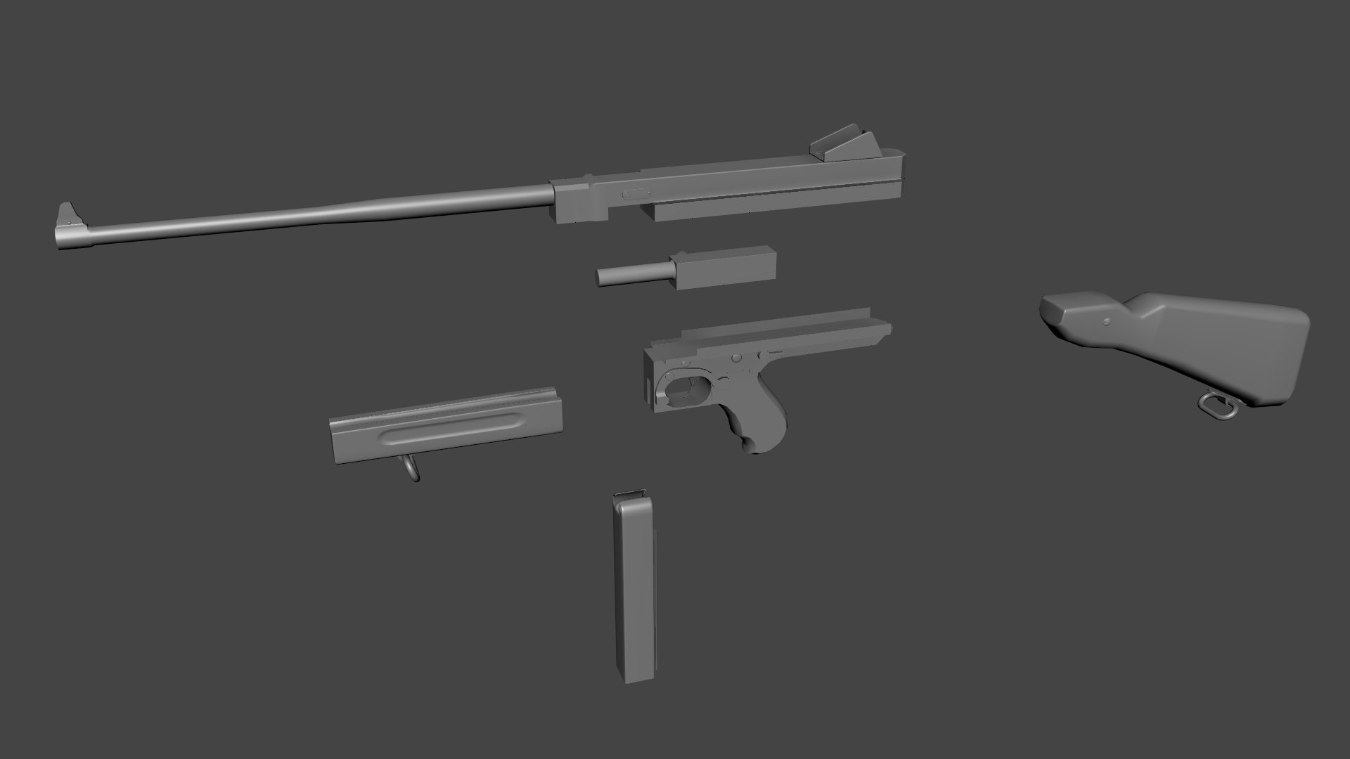 I started to add the insides of the weapon. I need to work on the shape of the buttstock. It's bothering me a bit. The magazine is still a bit of a mess where the bullet enters it.