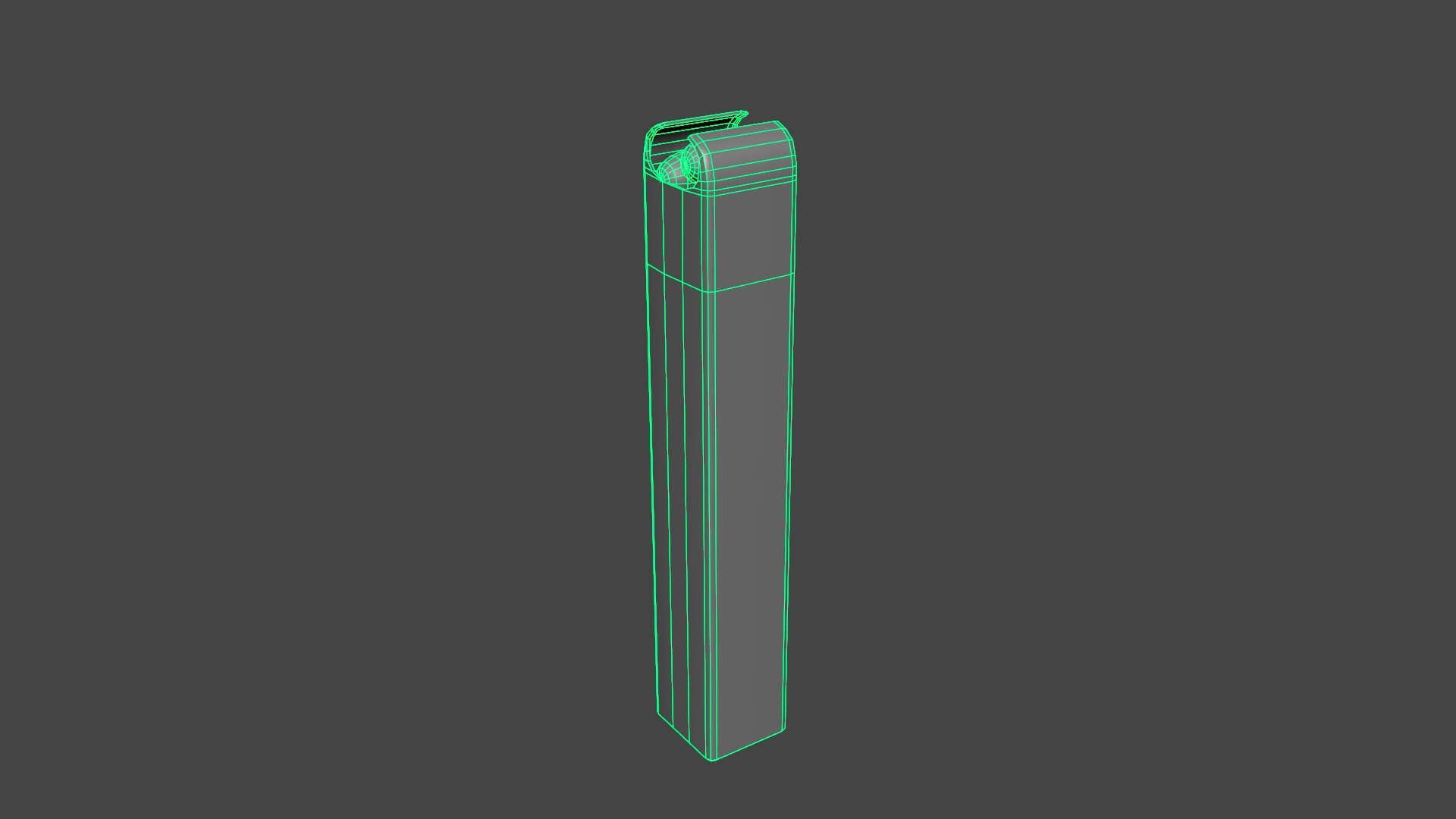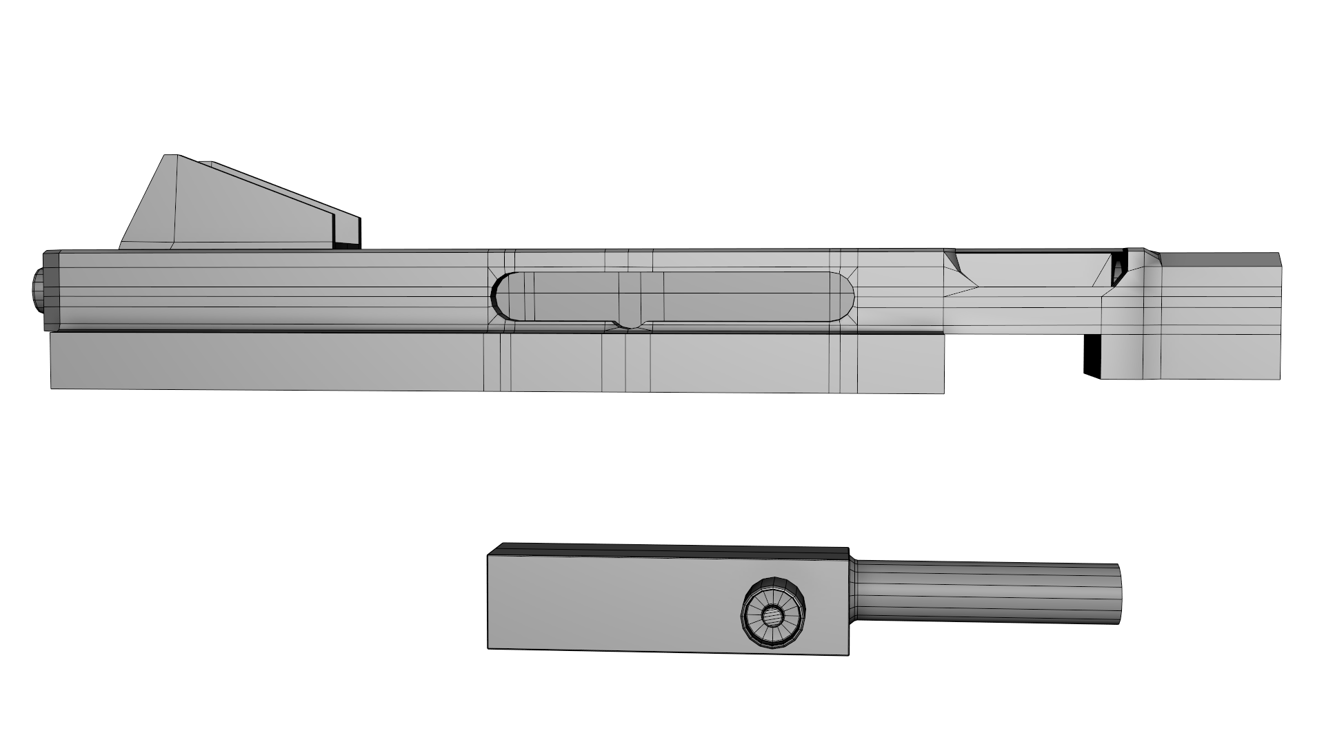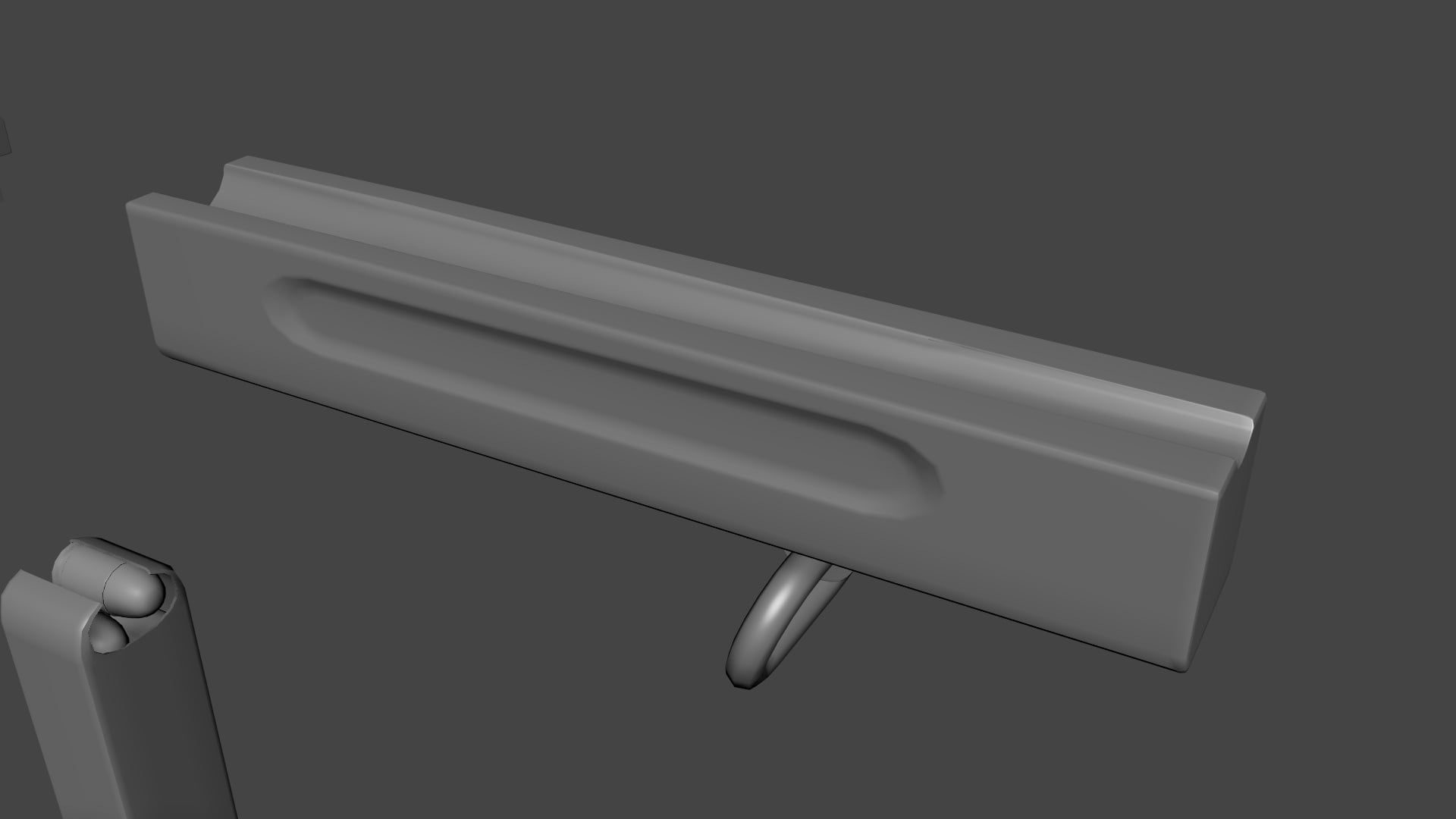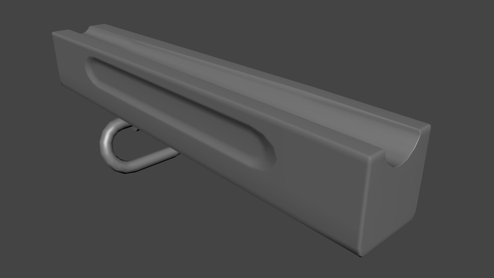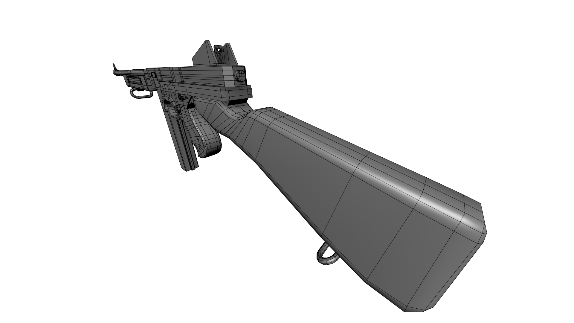 I started to add the insides of the weapon. I need to work on the shape of the buttstock. It's bothering me a bit. The magazine is still a bit of a mess where the bullet enters it.
