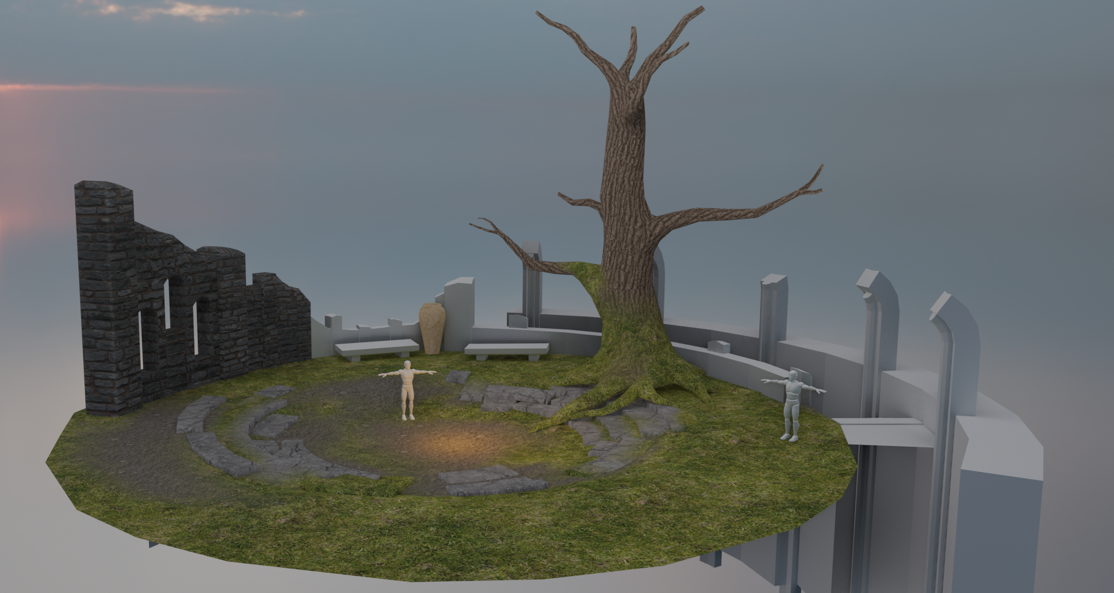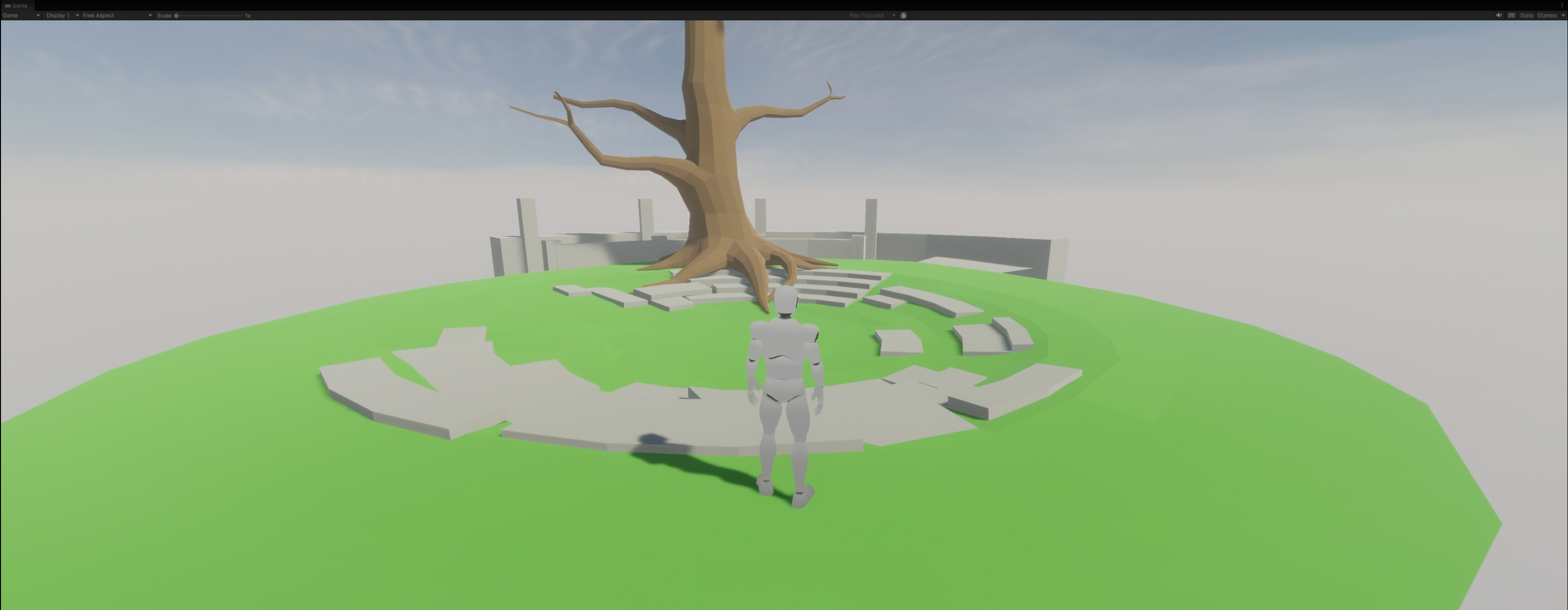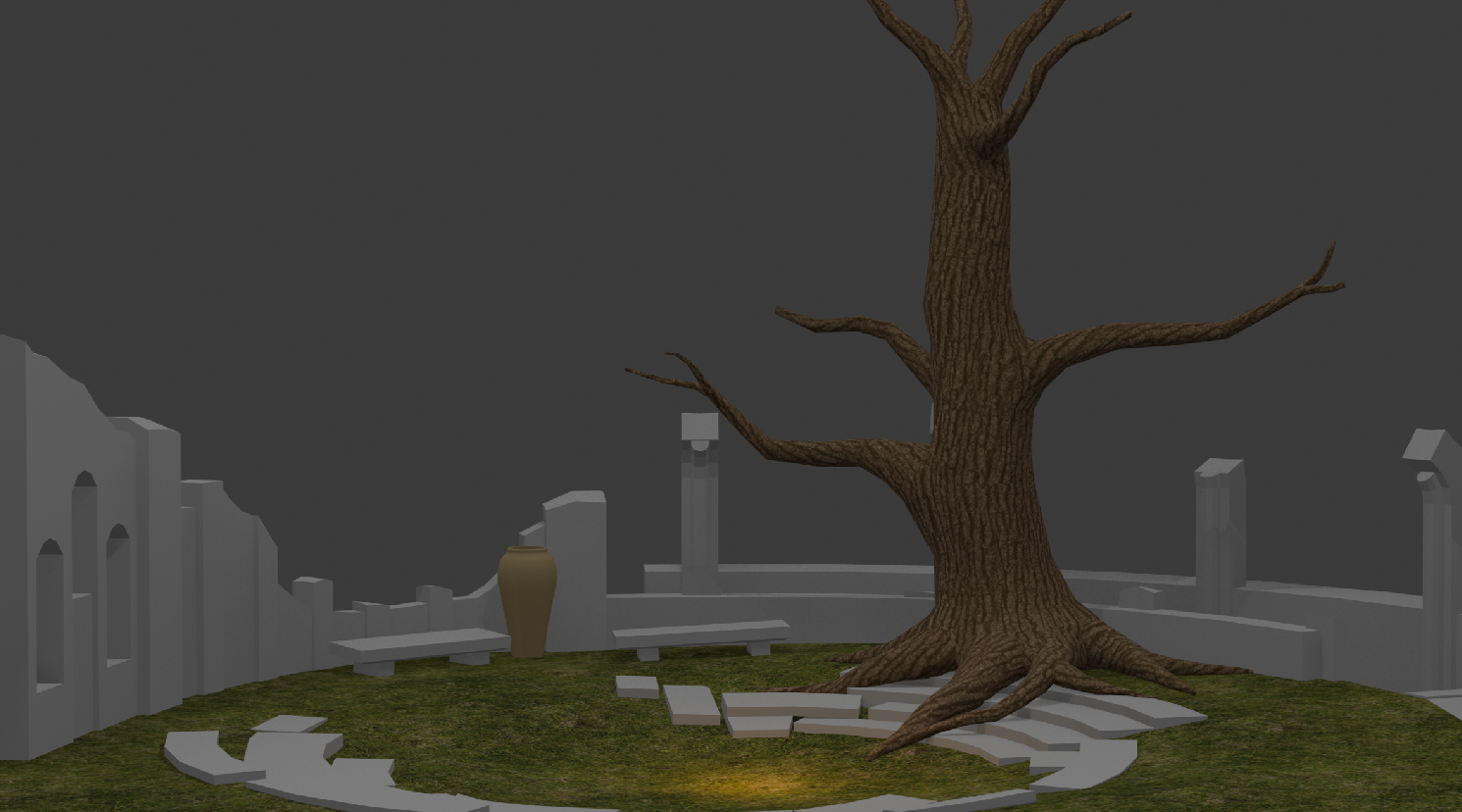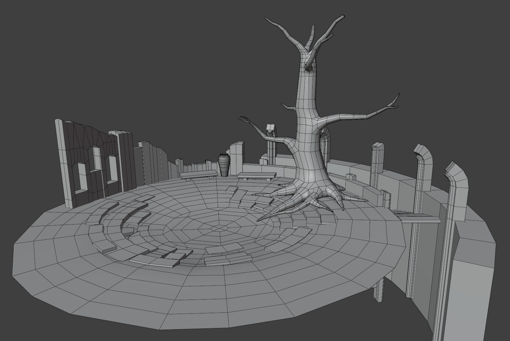 Would love to see a more interesting shape on the big tree. The roots are nice, but floating. The main trunk is very straight, could be nice to make it a spiral or some other interesting shape, that complements the half-circle stage.