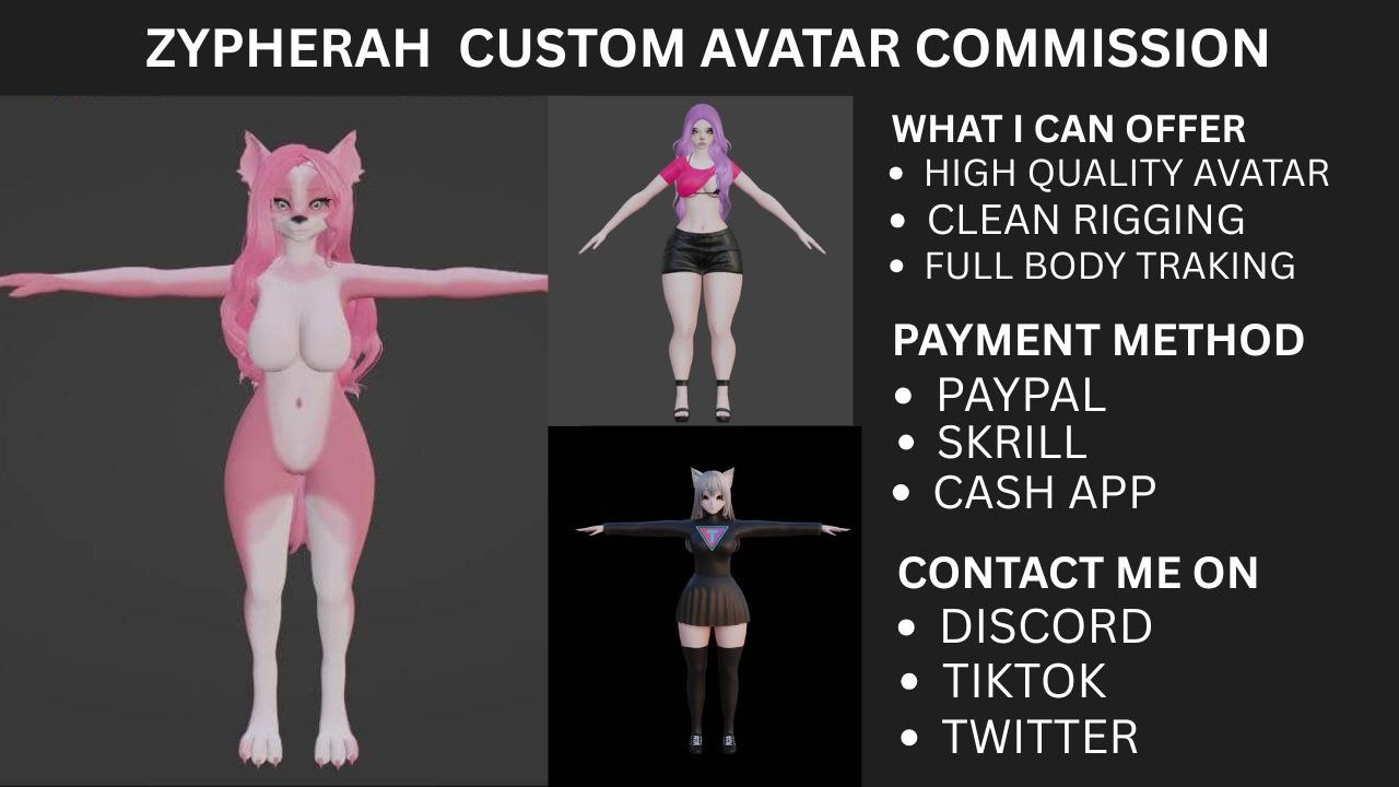 Hi! I’m Zypherah, a VRChat avatar creator offering high-quality custom avatars, base edits, and advanced VRChat avatar setups.