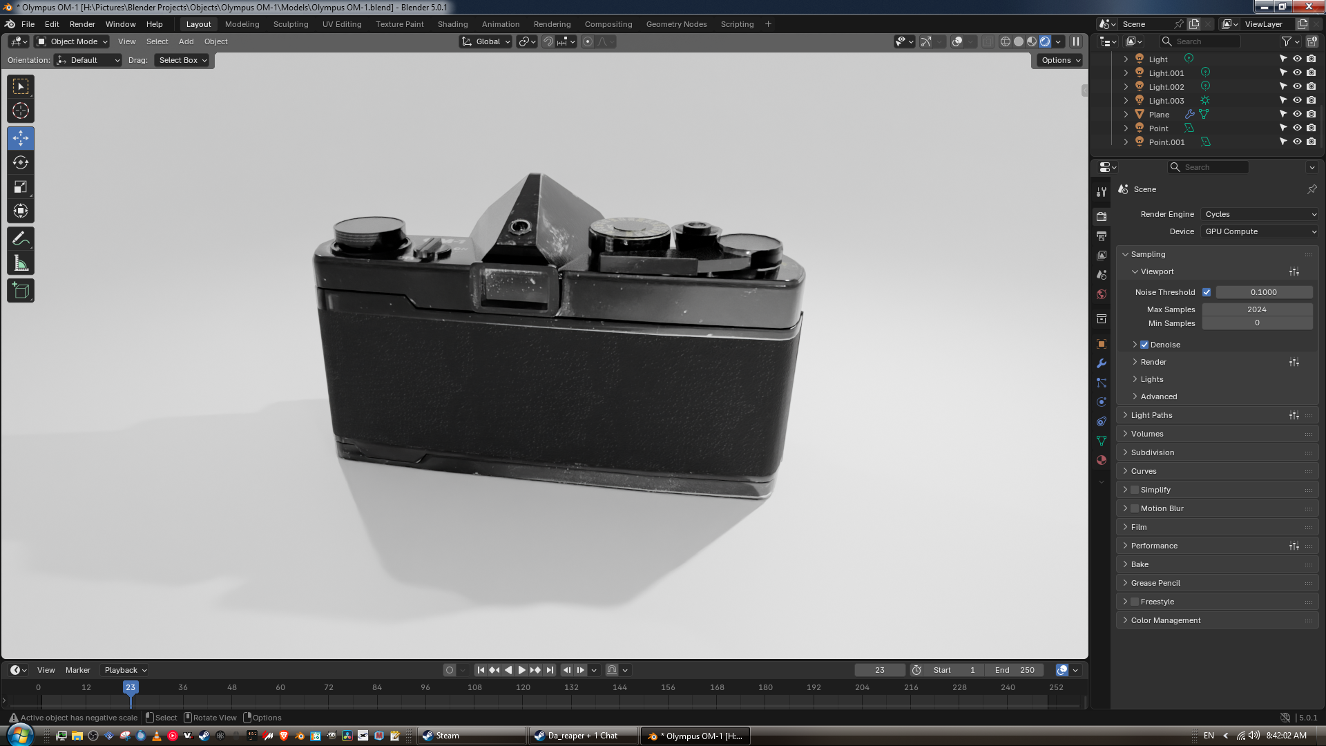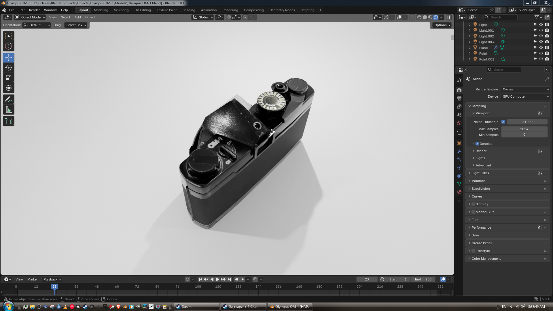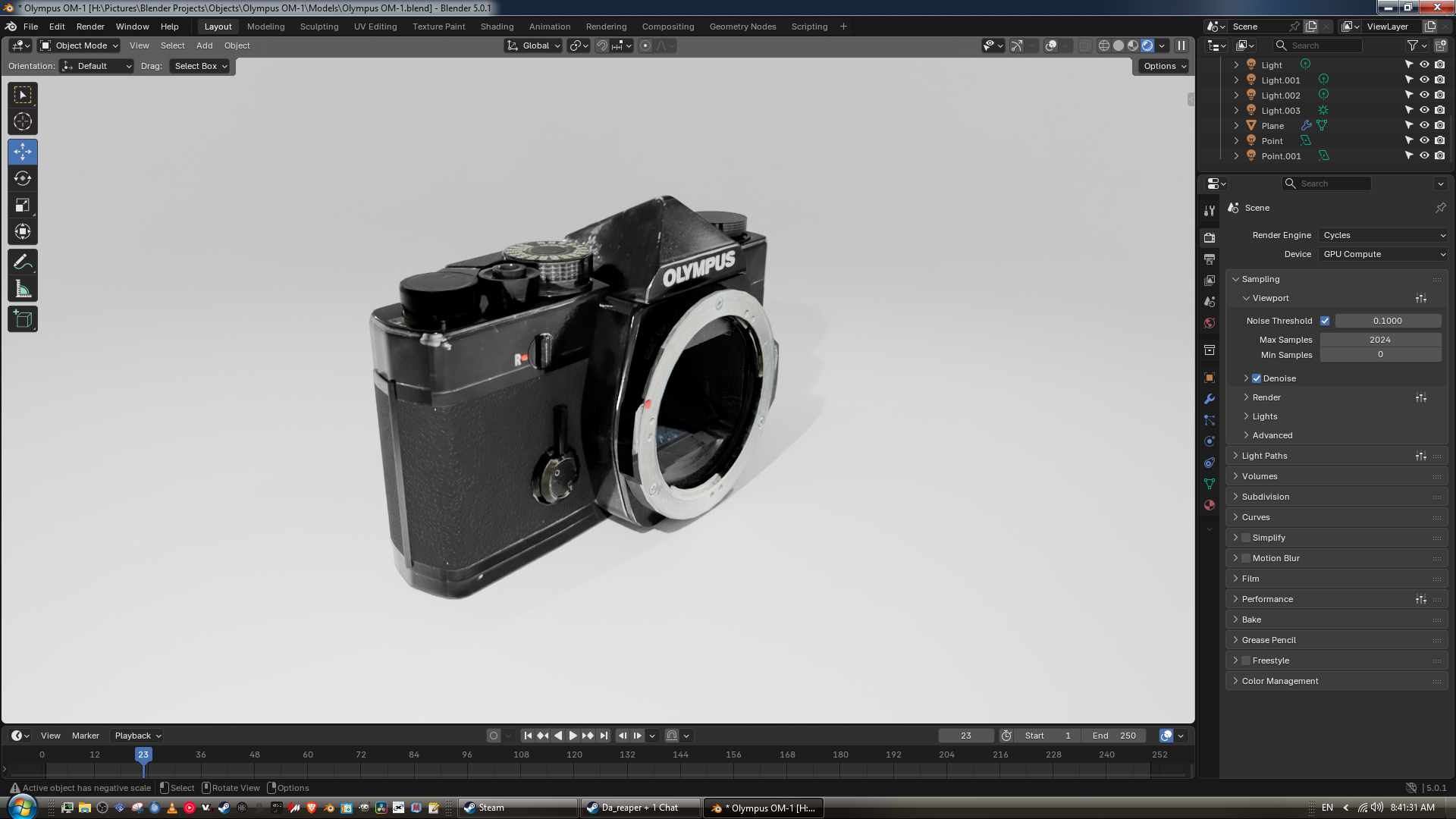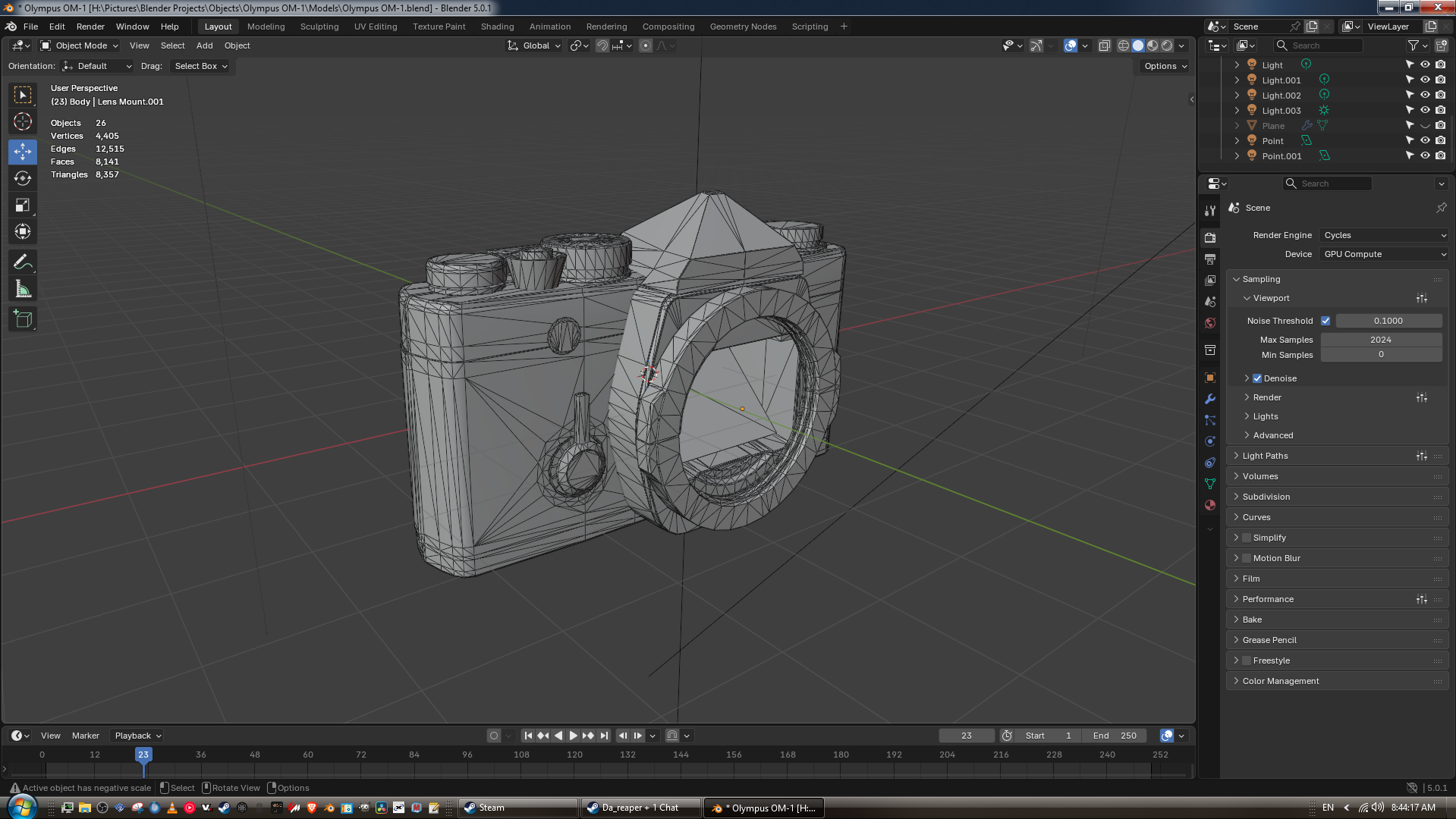 I'm working on a model of my Olympus OM-1 as a little practice piece. The current polycount is 8,357. I plan on making a Zuiko 35-105mm lens for it since that is the lens I use on it irl.