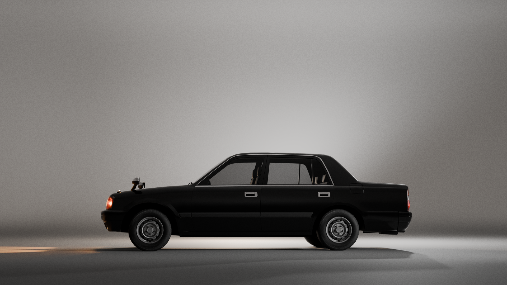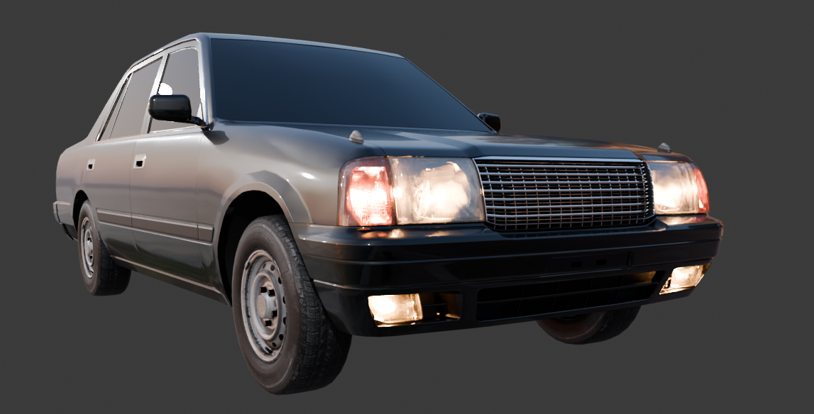 Pretty much finished at this point. Last thing I need to do is make a proper livery (probably going to make a Honjo Taxi), and then I have to make a nice scene to render it in that isn't a grey blob.