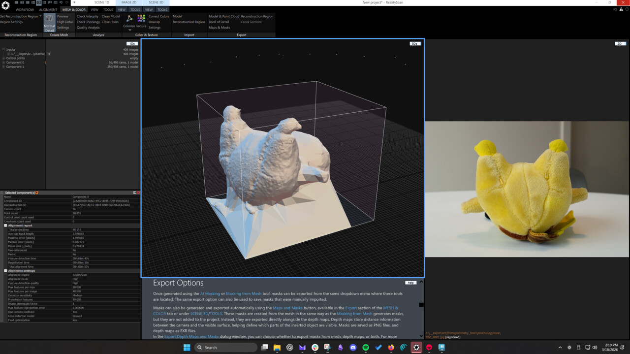 Anyway, I set out to scan a number of objects, all of which (3-4) came out with photo alignment issues. My images were probably too dark/too narrow depth of field/not enough shots.