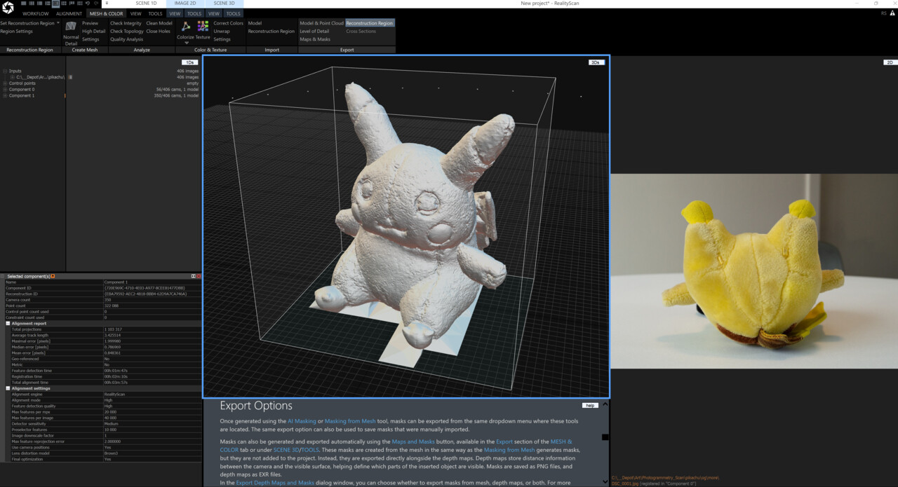 Now, I said, with this Pikachu stuffed animal, I'm going to get this right! Who doesn't like Pikachu? So all in, I have about 400+ images. I took about 350 to start, then realized I probably needed bottom images, and more detailed shots to clear up the discrepancies in his tail/ So I took about 56 more, under preeetty similar lighting conditions.