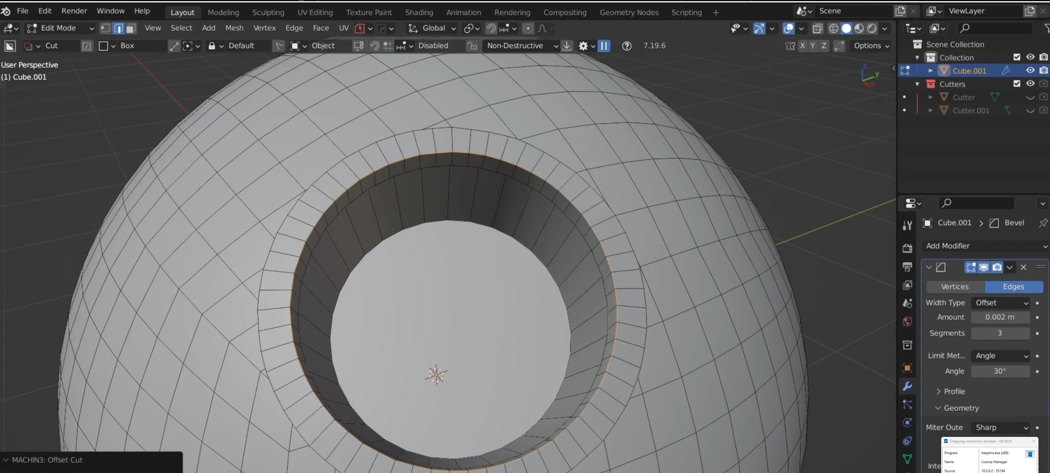 Example of Blender Mesh Machine Offset cut (Evenly divided edges along the new chamfer):