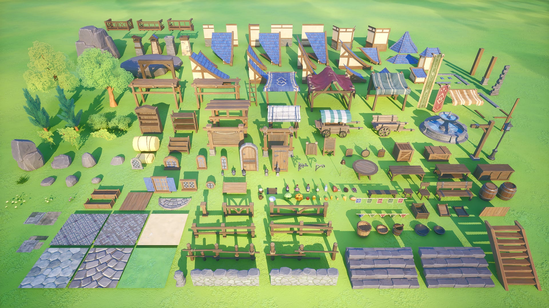 My main goal was to achieve a vibrant, anime/Ghibli-inspired aesthetic while keeping everything extremely optimized for real-time performance. Everything is modular, from the structural pieces to the props, allowing for quick town layouts.