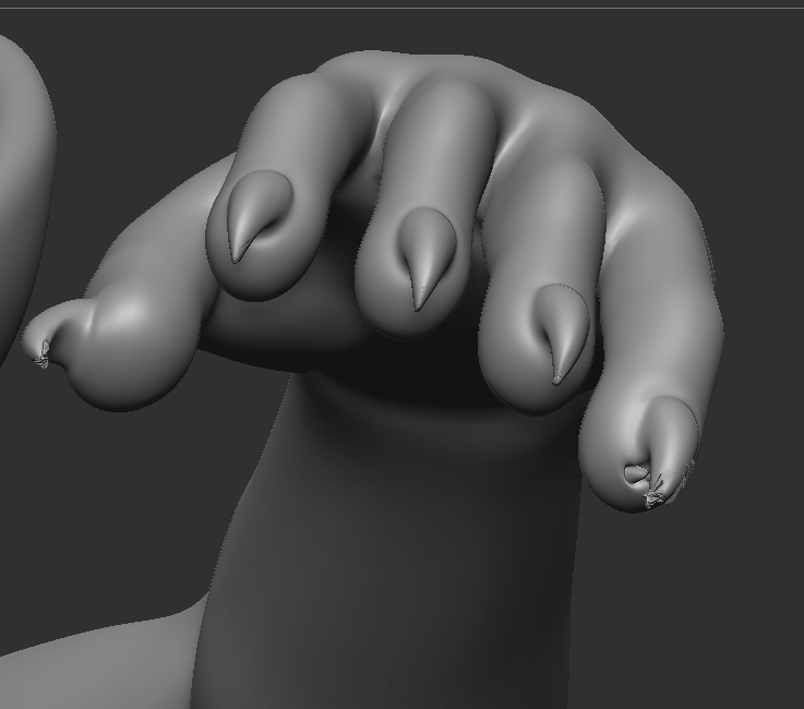 - I also tried just Inflating, Smoothing, Projecting Detail at the highest SubD level.. but each of those just made the claws fall apart even more.