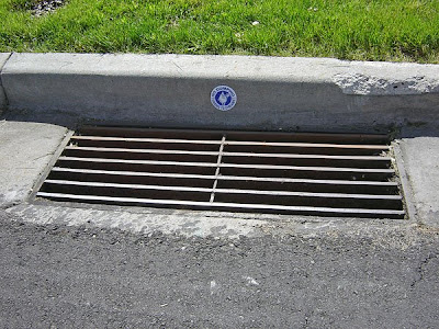 1) You need to figure out how the street drains. Does the water run to the curb and into storm drains. Or does it flow to the center of the street and down into the drain you have? How does water get up and over the edge of your drain? The color of the drain looks off, its kind of a white pristine galvanized steel or sheet metal, but most that I've seen are a dark rusty iron set into the ground.