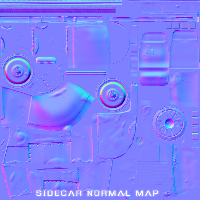 Texturing went a lot faster than I thought it would. When you have the groundwork laid out from the normal maps, it's surprising how fast you can work out all the other details. I tried to keep the colors mainly neutral, with some accent colors thrown in. Having certain parts of the bike painted blue, yellow, and white allows a conceptual reason for this to happen. You'll see little dabs of red here and there, but it doesn't overpower by any means. I also was trying not to put too much detail into the maps, which is a problem I've had in the past. This project taught me that sometimes less is more. There doesn't seem to be any part that overshadows another. You honestly don't want to know the total amount of layers I used in Photoshop for this project. I'm guessing at least a couple hundred.
