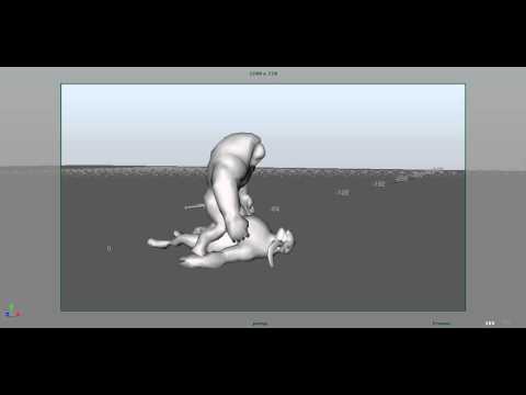 -As the big guy falls, he should fall with more delayed action. Right now it looks like everything comes down almost at the same time. Instead, delay the arms, upper body, head, etc more.