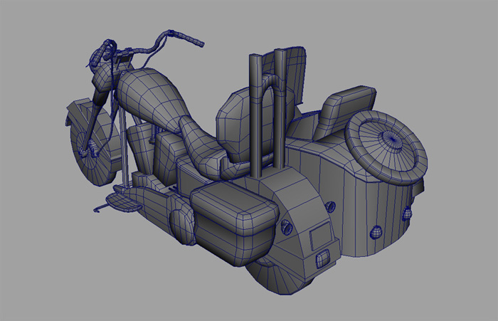 Texturing went a lot faster than I thought it would. When you have the groundwork laid out from the normal maps, it's surprising how fast you can work out all the other details. I tried to keep the colors mainly neutral, with some accent colors thrown in. Having certain parts of the bike painted blue, yellow, and white allows a conceptual reason for this to happen. You'll see little dabs of red here and there, but it doesn't overpower by any means. I also was trying not to put too much detail into the maps, which is a problem I've had in the past. This project taught me that sometimes less is more. There doesn't seem to be any part that overshadows another. You honestly don't want to know the total amount of layers I used in Photoshop for this project. I'm guessing at least a couple hundred.