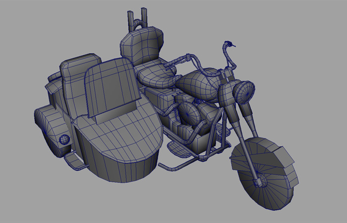 As far as your low poly goes, you still have a TON of wasted triangles, most evidently in the sidecar. I've attached a paintover showing a more efficient use of triangles on the front of the sidecar. There are several places where it looks like you just got rid of your smoothing loops and called it good, where you can (and should) go through and get rid of any triangles that aren't supporting shape or silhouette. Once you've done that, give your tires more divisions to make them look more rounded, at the moment they look extremely faceted, and adding in a bevel to the sides will also help the normal map transition from the tread to the sides. I'd also put in geometry for the straps on your saddlebag. If done correctly, you can make your low poly more detailed to fit your high poly and it should still weigh in at 10-11k tris.
