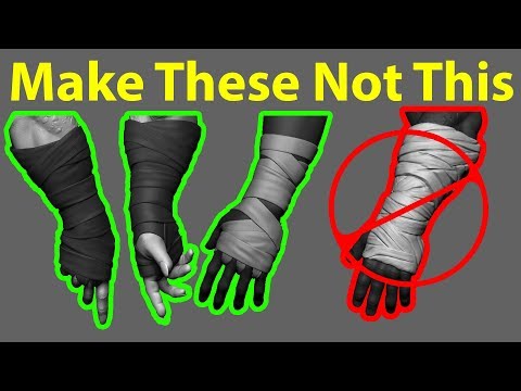 I was wondering if anyone knows of any modelling/sculpting techniques or tutorials for bandaged arms. Ive included the model im working on (where the forearms are red is where the bandages will be) and the concept art piece im working from.