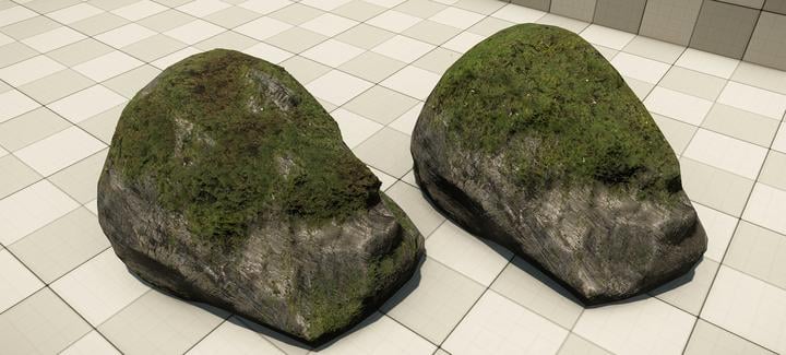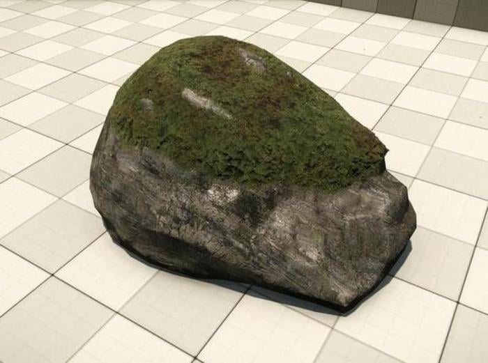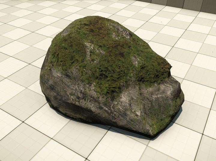Our demo rock has all the moss geometry layers ready. We can export it into Cryengine and check what it looks like in this state: