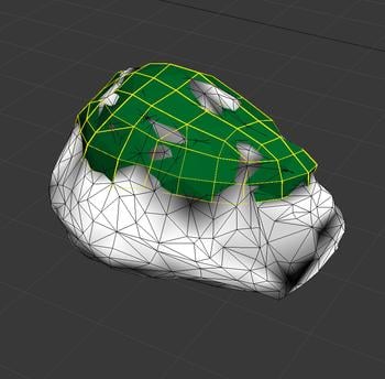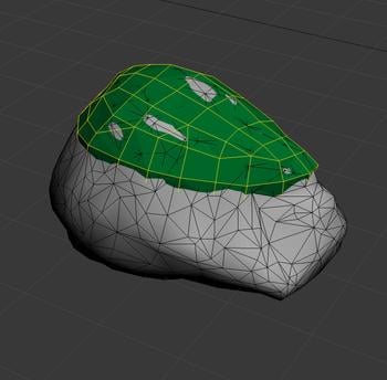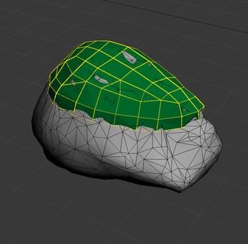 Selecting already existing triangles on our rock mesh and detaching them also works to create that poly shape, but you will probably end up with more triangles then necessary. Also, cleaning up such a mesh is more work than quickly making a re-topologised version, allowing greater control of the edge flow.