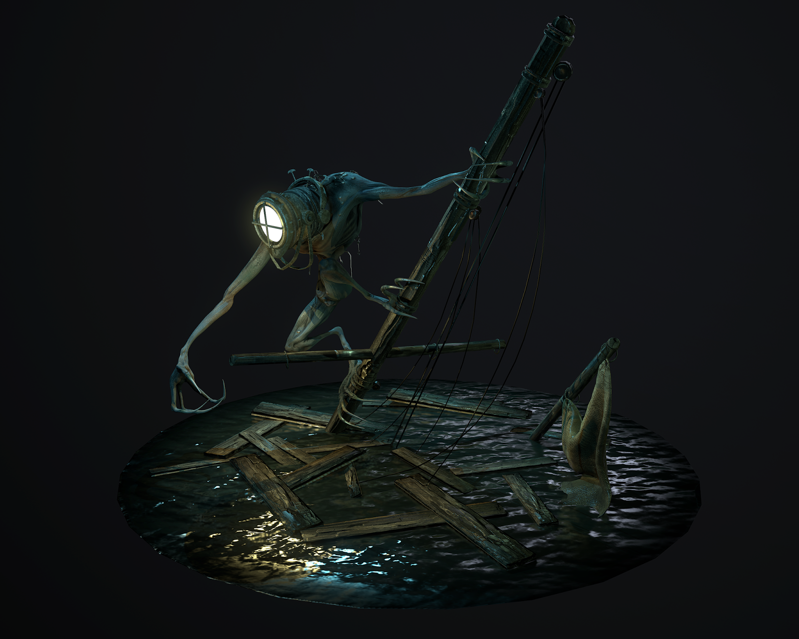 A old lightkeeper suffering from Innsmouth malediction , he became a humanoid fish and lose his mind. he trap lot of seaman with his light head and haunt the village all night.