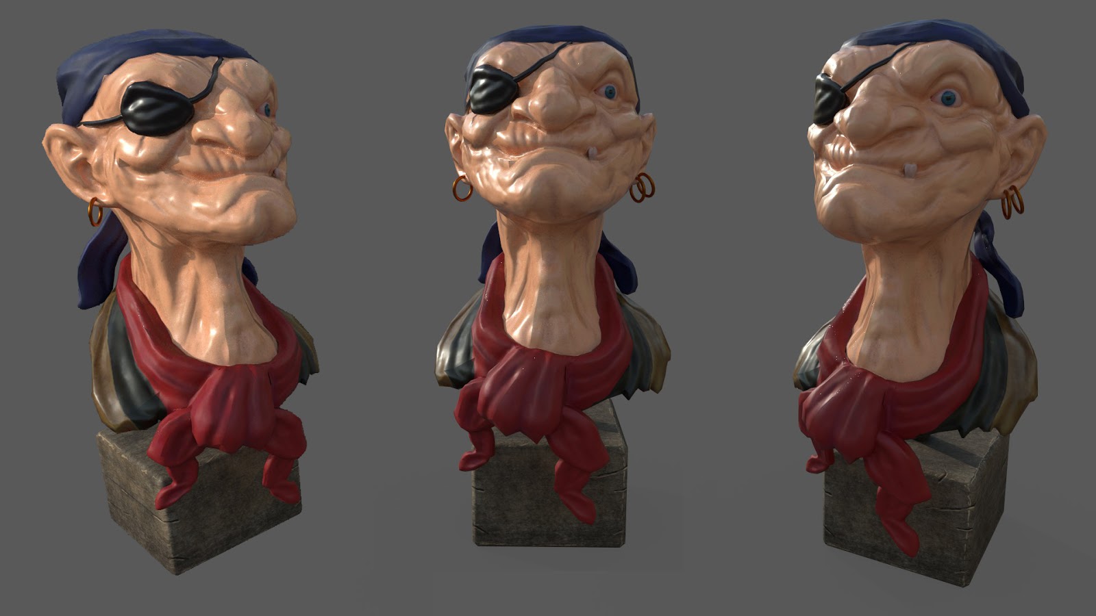 Here is the texture for the Pirate, inside Substance Painter rendered in Iray.