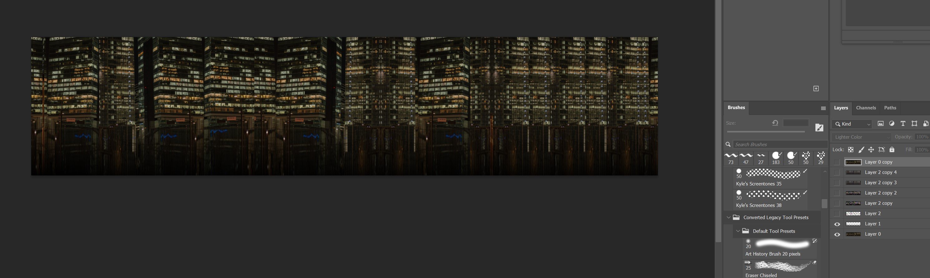 - The background with the skyscrapers is a bit crappy for now, i'll get back to it later on. It's tiling in the uvs and the aggressive square noise makes cuts to make building shapes.