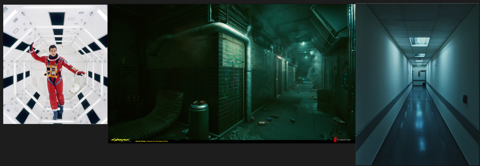 So I started researching examples of this kind of quarantine tunnel. I couldn't find many real world examples but i did find a couple in films like ET (1982) and 12 Monkeys (1995). There were a couple references of air purifying tubes and machines connected to the tunnels which would be cool to make too afterwards. All of the film screenshots I got from the website shotdeck.com, it's one of my favourites other than pinterest for collecting references!