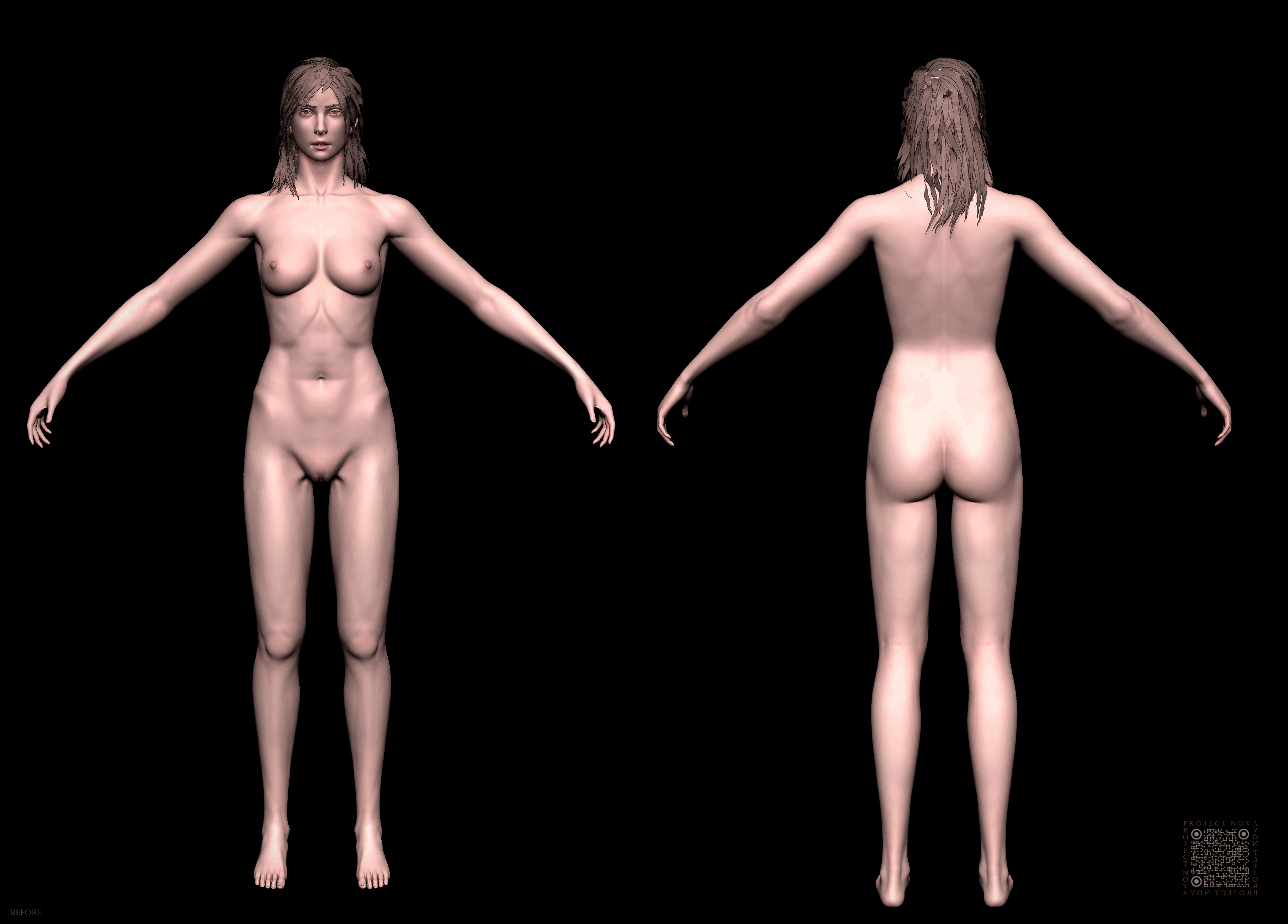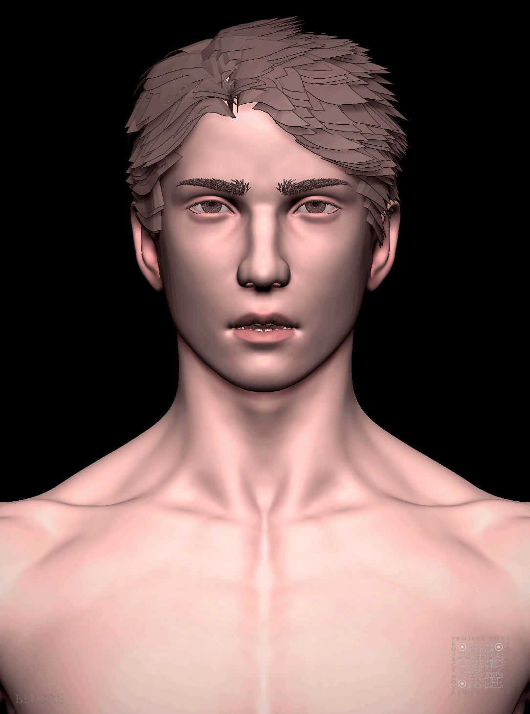 I made some less terrible placeholder hair for the female basemesh, more face ratio/proportion tweaks, smoothed out some areas. Probably pretty close to being able to start adding in finer detail like skin creases and wrinkles on the female mesh, male mesh still needs face work.