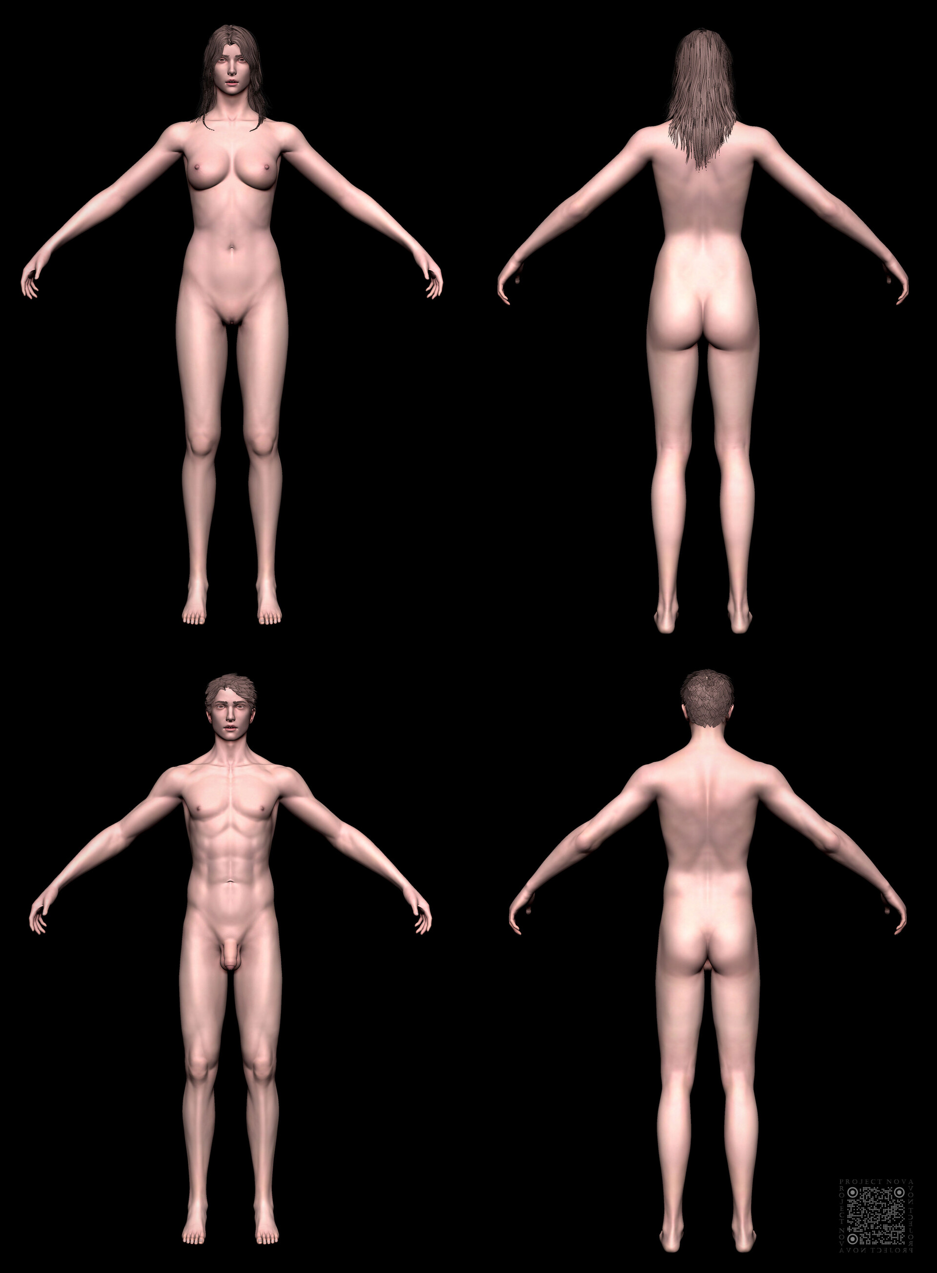 Ooh, that's quite inspiring progression. Doesn't the crotch and inner thigh area seem a little strange on the female model, though? With that strong line there, it makes it look, to me at least, like the pectineus is tensed up, which seems a bit strange on a static model. Plus, the fat pads usually cover that, I think. Also, the wrists on both genders seem very thin.