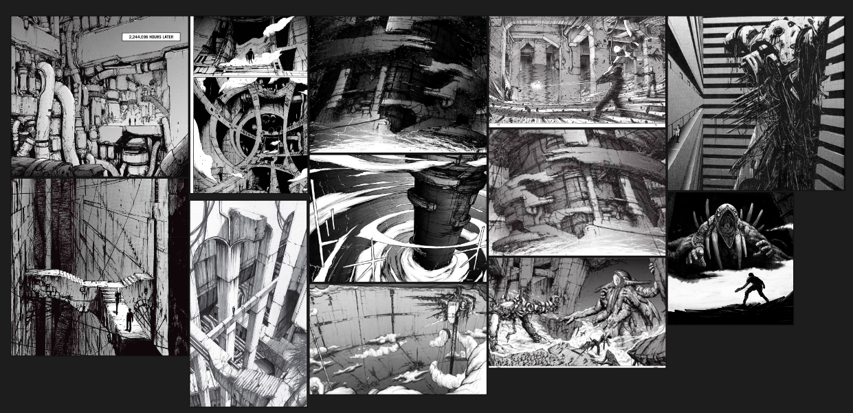 Humans over rely on AI for everything, although productivity of the city increased exponentially at first, the quality and meaning behind the products degraded, and everything became homogenized and lost all meaning. Now the city fully automated and ever expanding, without understanding why its need for expansion.- Environment should feel lifeless and dull
