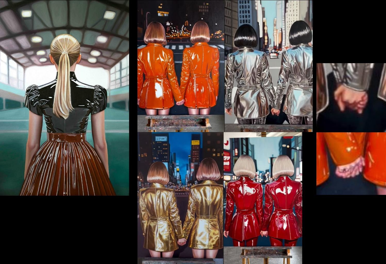 It's all a very cynical act. The *whole* thing is based on a lie by ommission making the museum curators and the visitors believe that she somehow conjures these images in her mind onto the canvas, through "years of studying colors and materials" ... whereas this is just paint-by-numbers-inside-the-lines of Midjourney slop. And poorly done, too : just look at the buildings above the silver twins She'd probably be more accurate if she turned her reference and canvas upside down, working "blind".