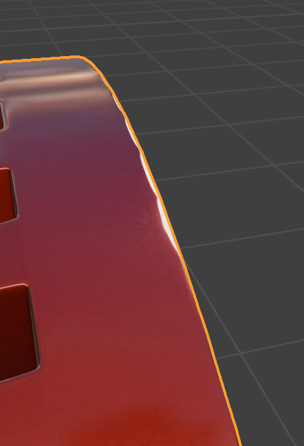 The rear rails you can see I went with a slightly different flow, simply because there's a 45° edge on the front face, which taunts me to secure it first and foremost. The slight width-inconsistency you can see on the smoothed curve/edge is not due to my geometry, but due to catmull-clarke generating a wider and softer curve as the angle of the faces decrease.