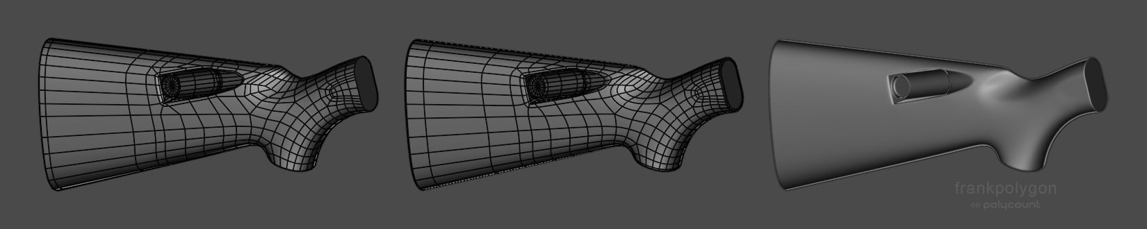 A couple of pages back there's a longer write-up about blocking out stocks. It covers how to create the basic shapes, when to apply subdivision during the block out, and how to redirect the loop flow around secondary and tertiary details: https://polycount.com/discussion/comment/2801011/#Comment_2801011