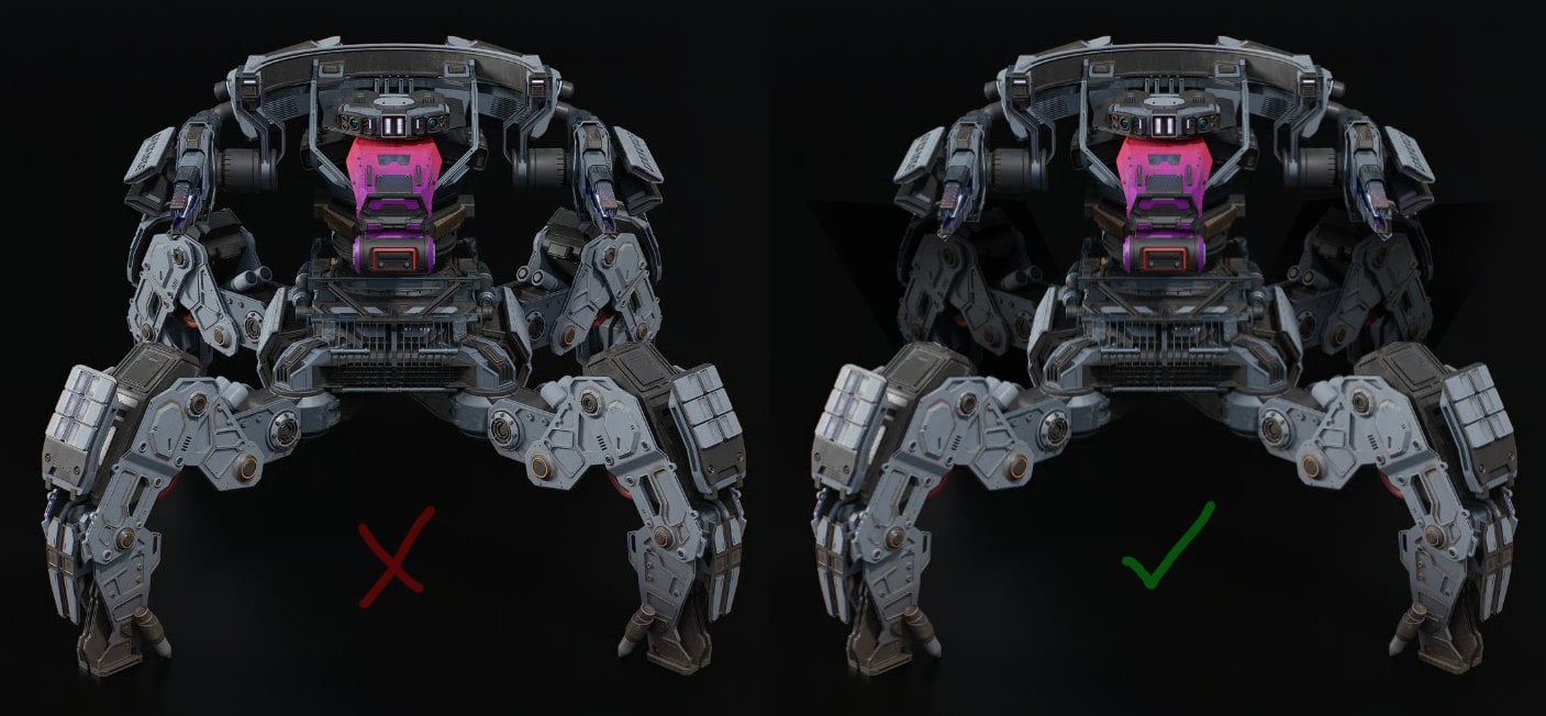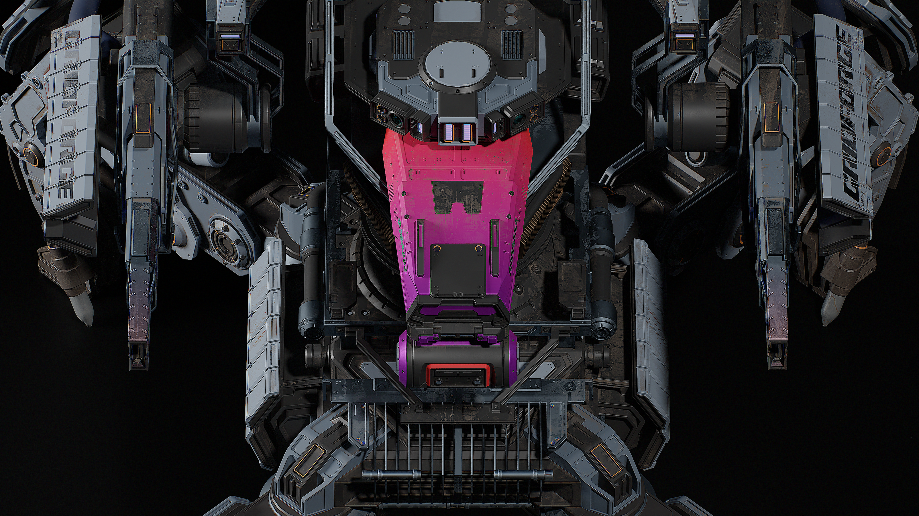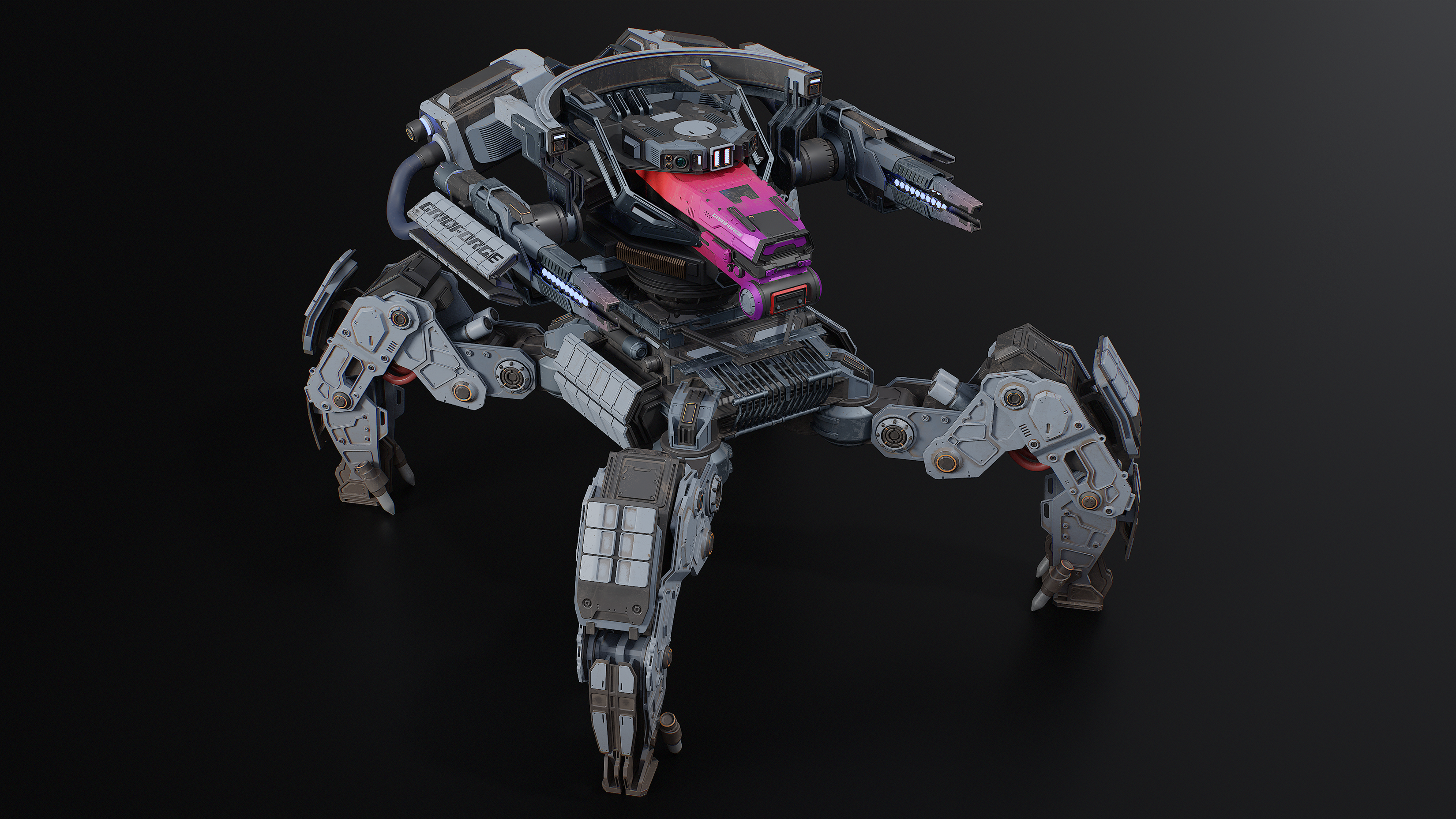 In this concept, I wanted to capture the spirit of a heavy, industrial, combat robot with clean, heavy lines. But I decided to add a bright accent just for fun  :p