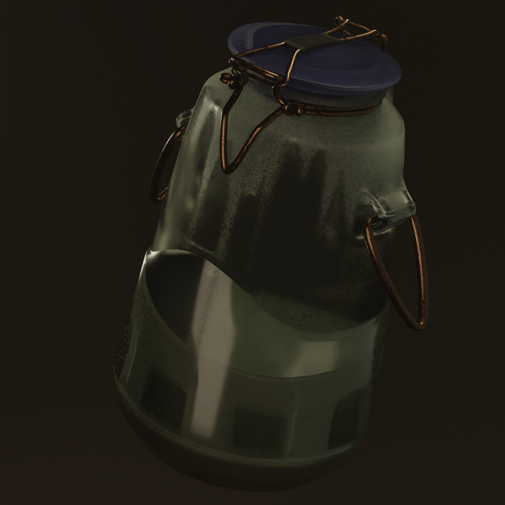 Despite the light speckles in the concept being likely reflections and/or surface glitter I chose to interpret them as particles inside the glass because I can. I can't see how the locking mechanism for the lid from the concept could possibly work, so I changed it based on a real jar, but I'm feeling too lazy right now to take photos of it and post them.
