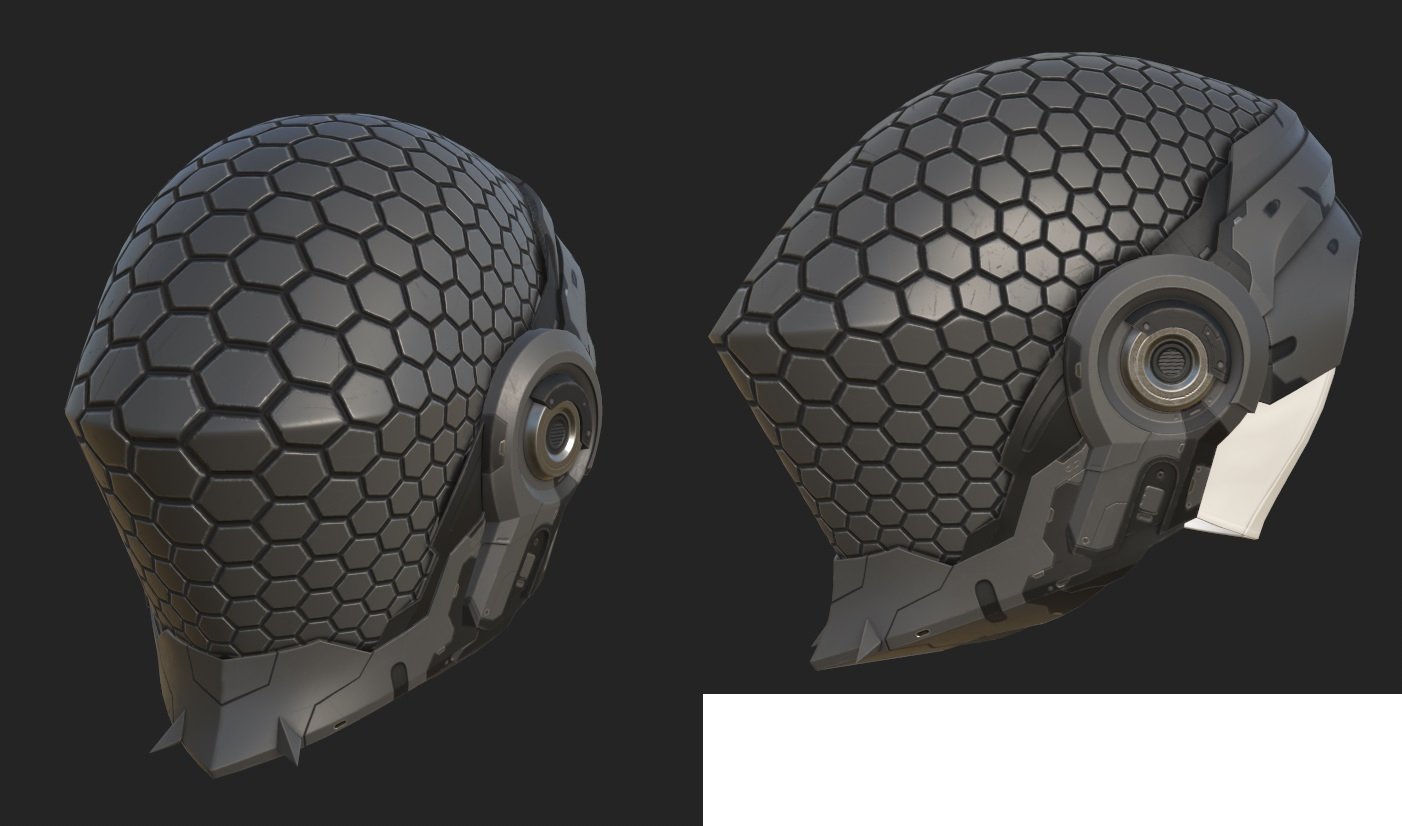 So I'm having a difficult time making this specific texture wrap around the visor. I've tried quite a few ways of relaxing the the UVs, but nothing I do seems to work. Triplanar also looks too broken because of the type of tileable texture I'm using.