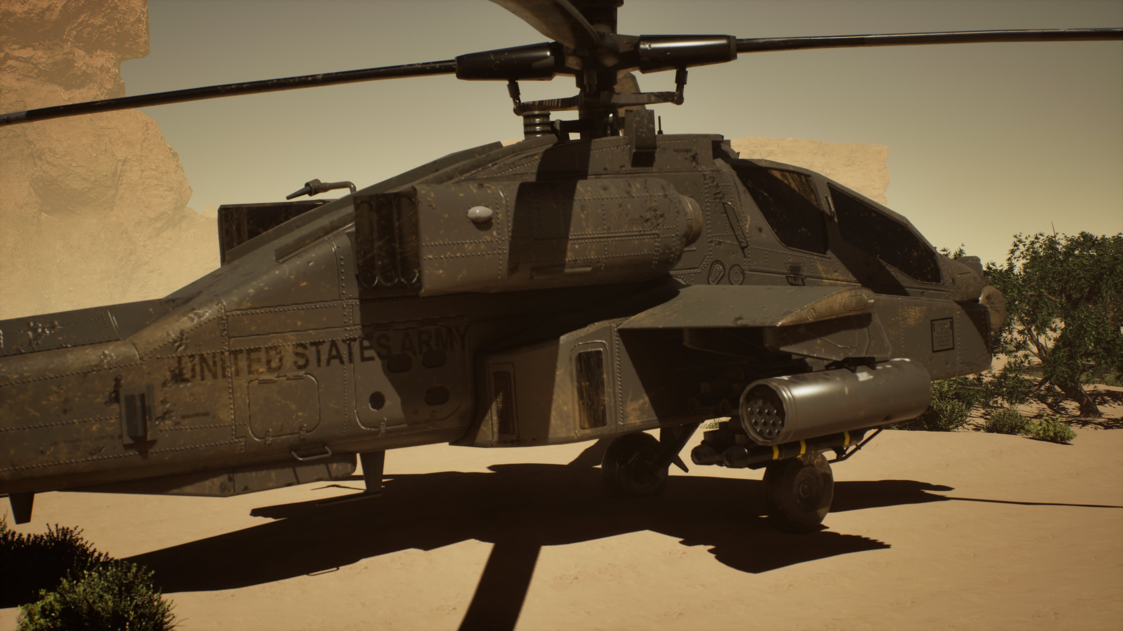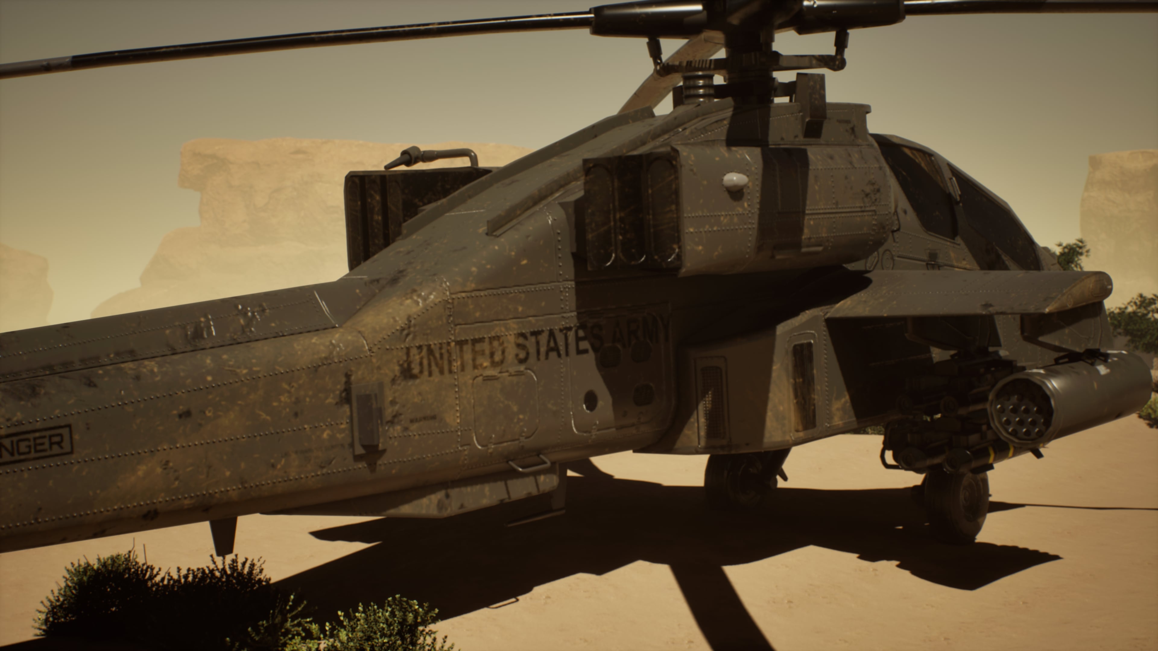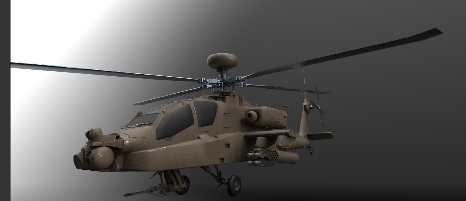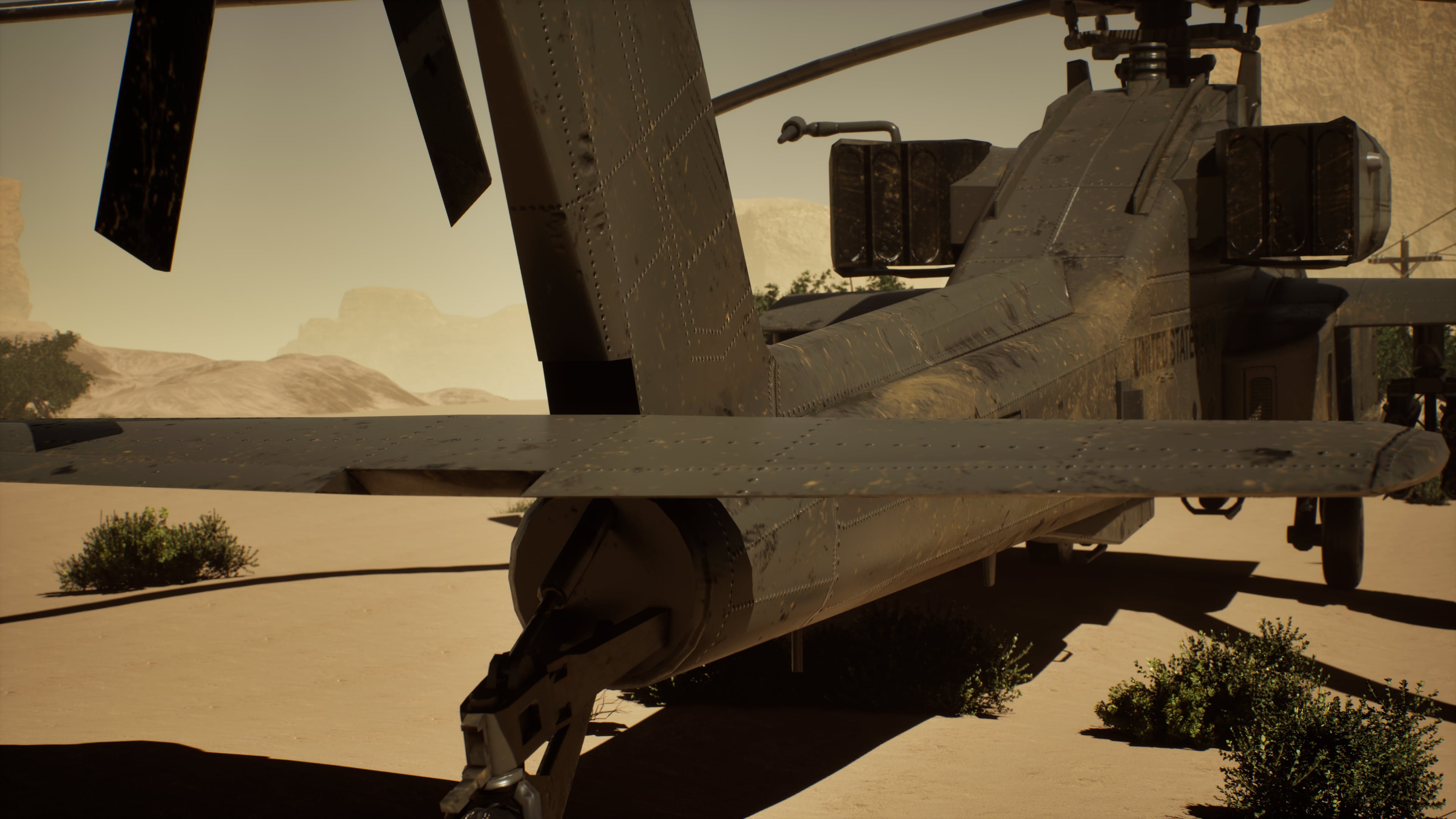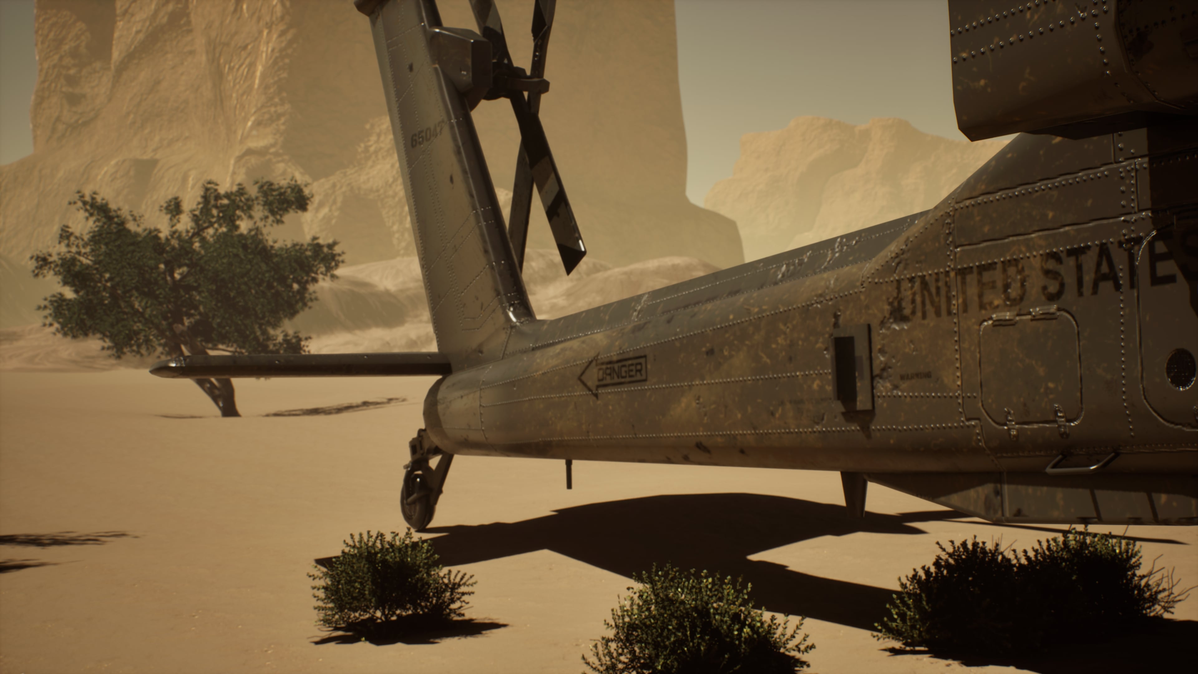 The only tiny detail I'd suggest. Make the ground underneath look more disturbed from the chopper blades. Like it kicked around some sand as it landed. Totally optional, just a suggestion.