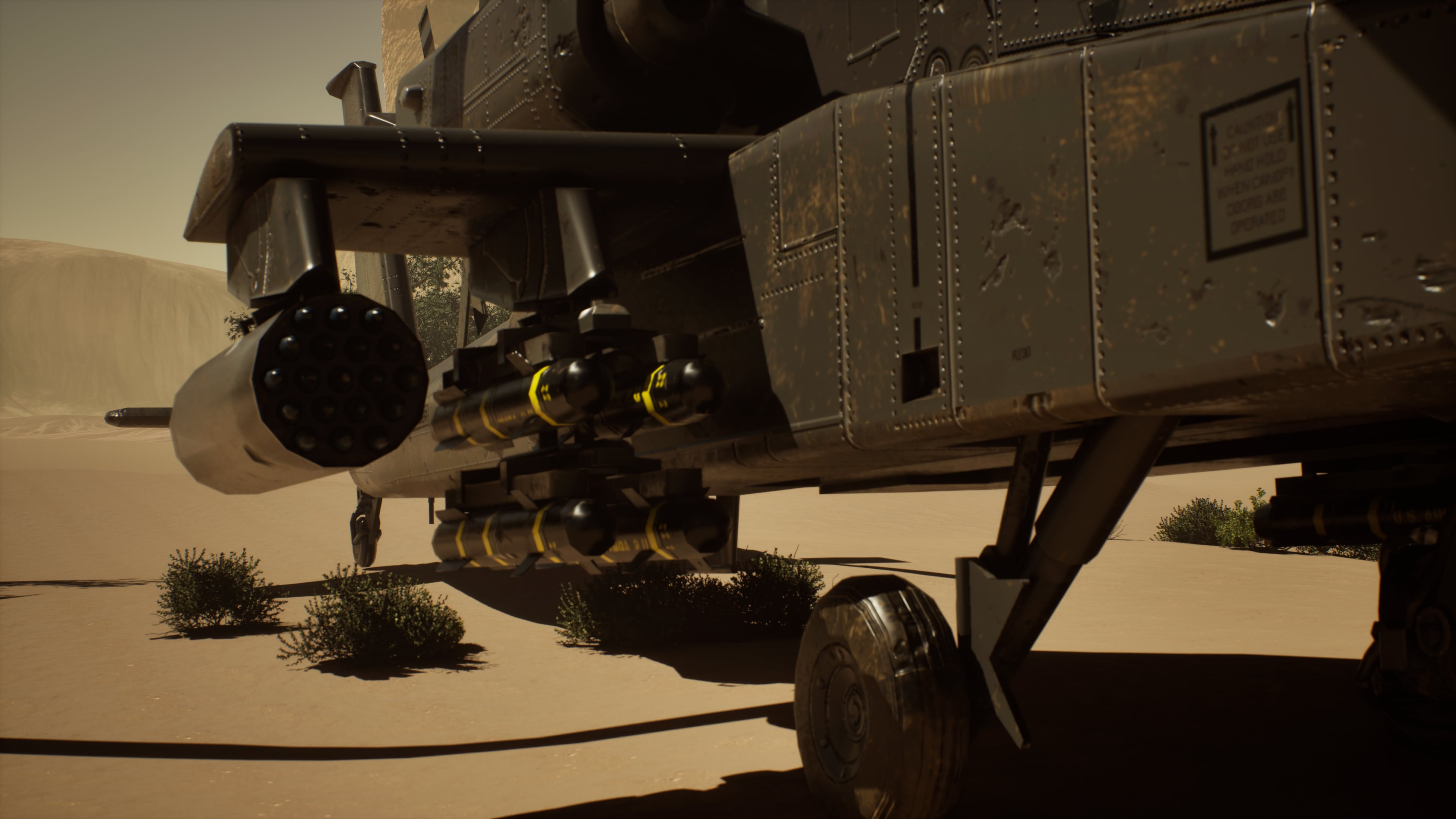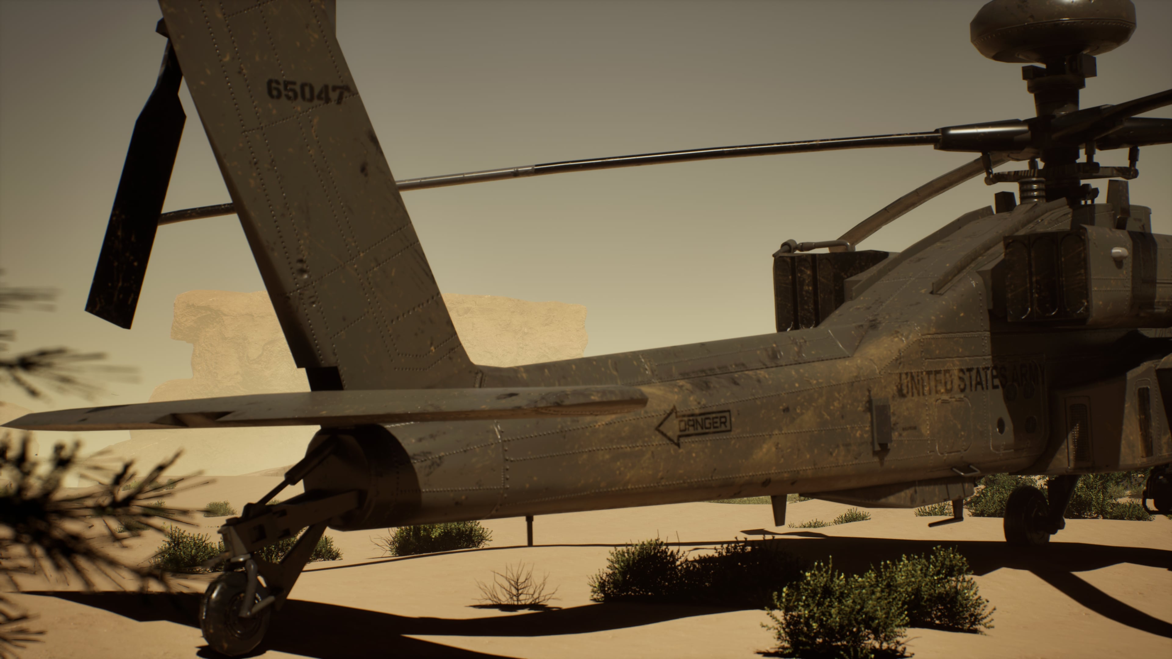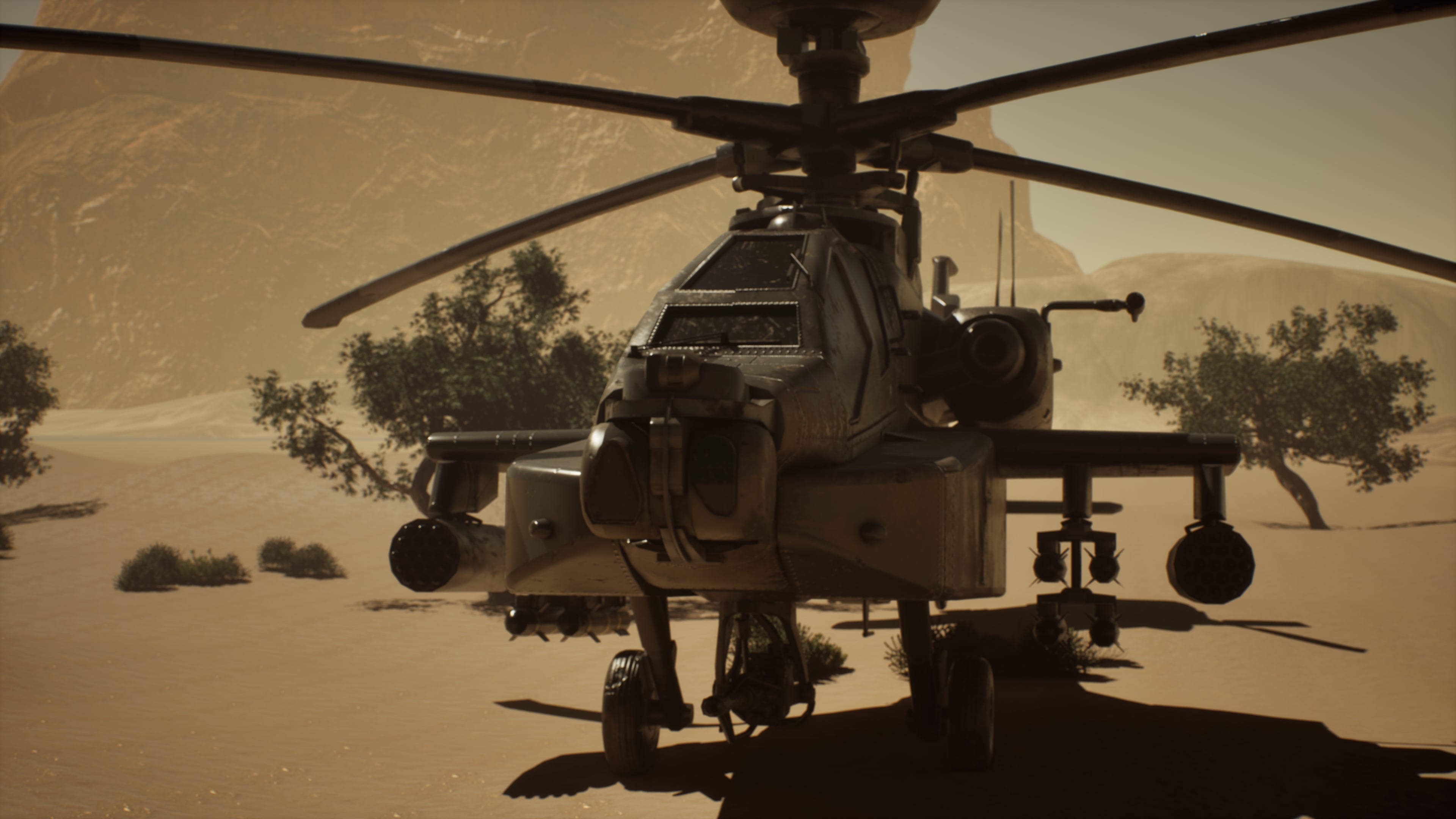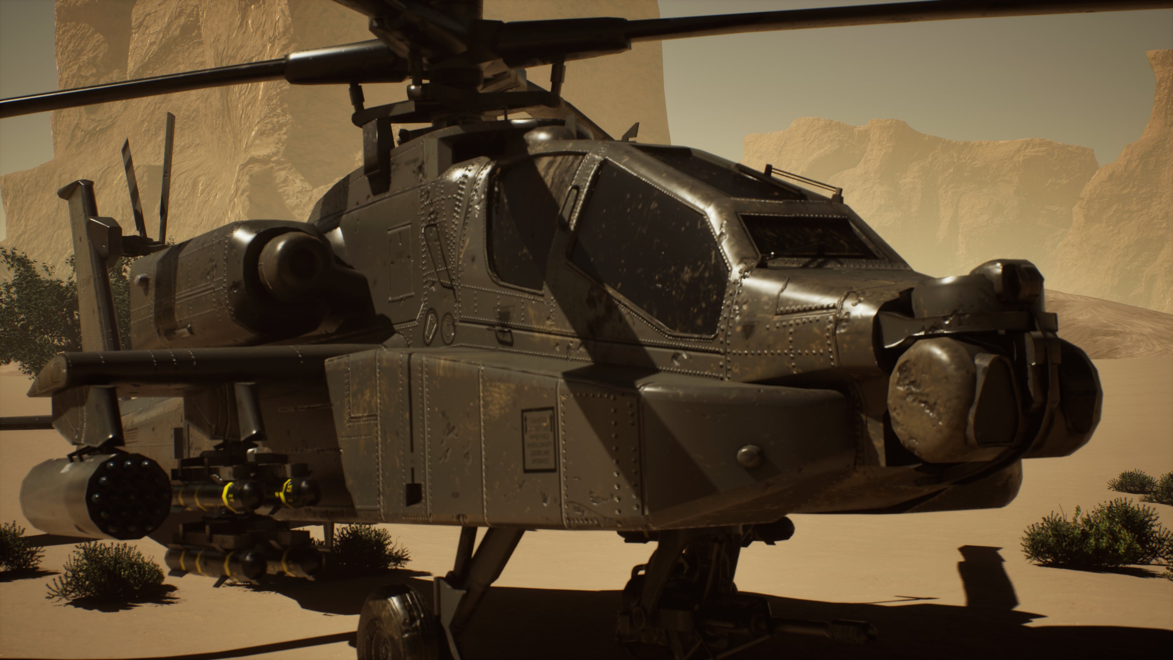 The only tiny detail I'd suggest. Make the ground underneath look more disturbed from the chopper blades. Like it kicked around some sand as it landed. Totally optional, just a suggestion.