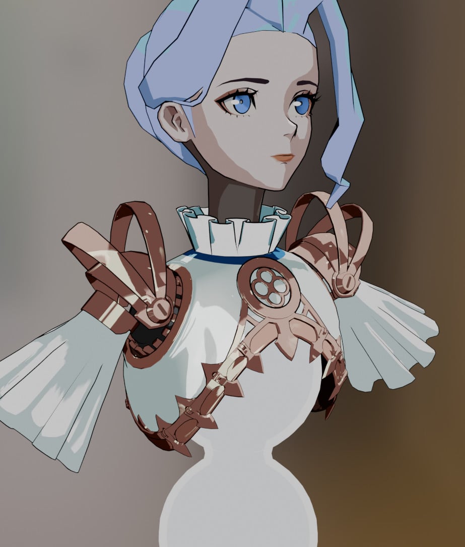 I tried tweaking the face a bit, but over time the feel of the character is off compared to the concept so I will have to revisit it after more progress. Did a little bit on the hair as well. Also getting some shadow artifacts which I'll address later or likely in engine.